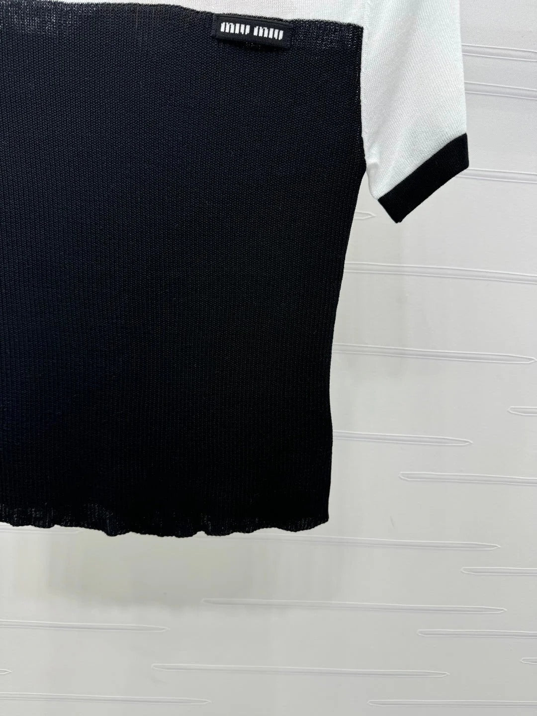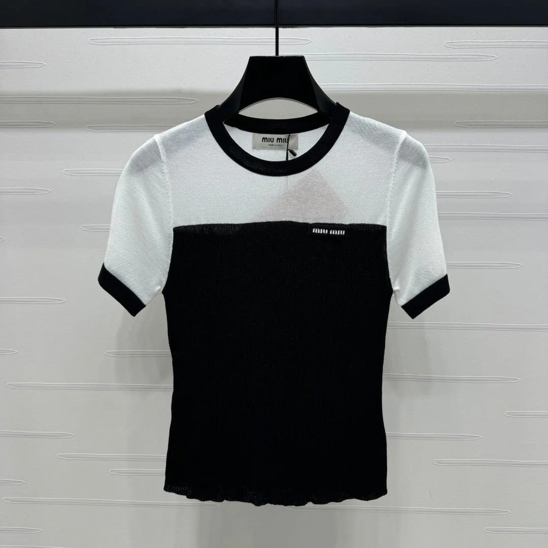 MIUMIU CREW NECK SHORT-SLEEVE SHEER KNIT TOP 274813
