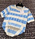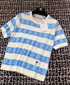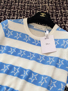 CD 2025 Striped Short-sleeved T-shirt Blue White tencel 606659