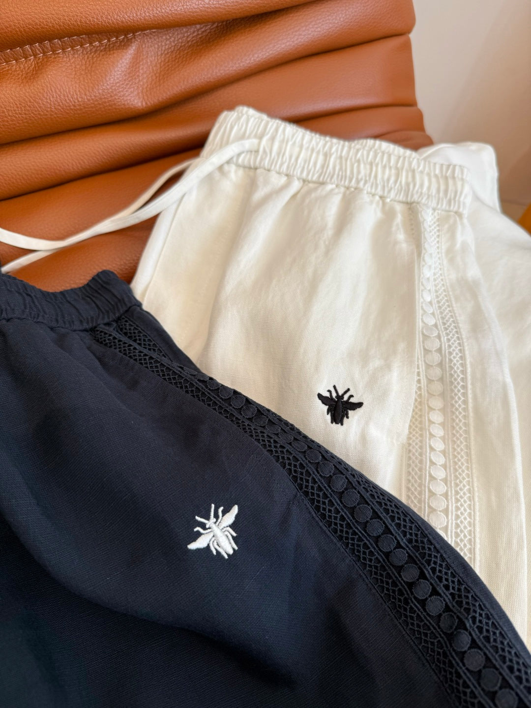 CD 25 Hollow Lace Pant Black and White Natural Fiber