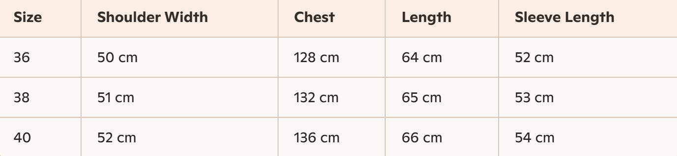 - Size : 36, 38, 40