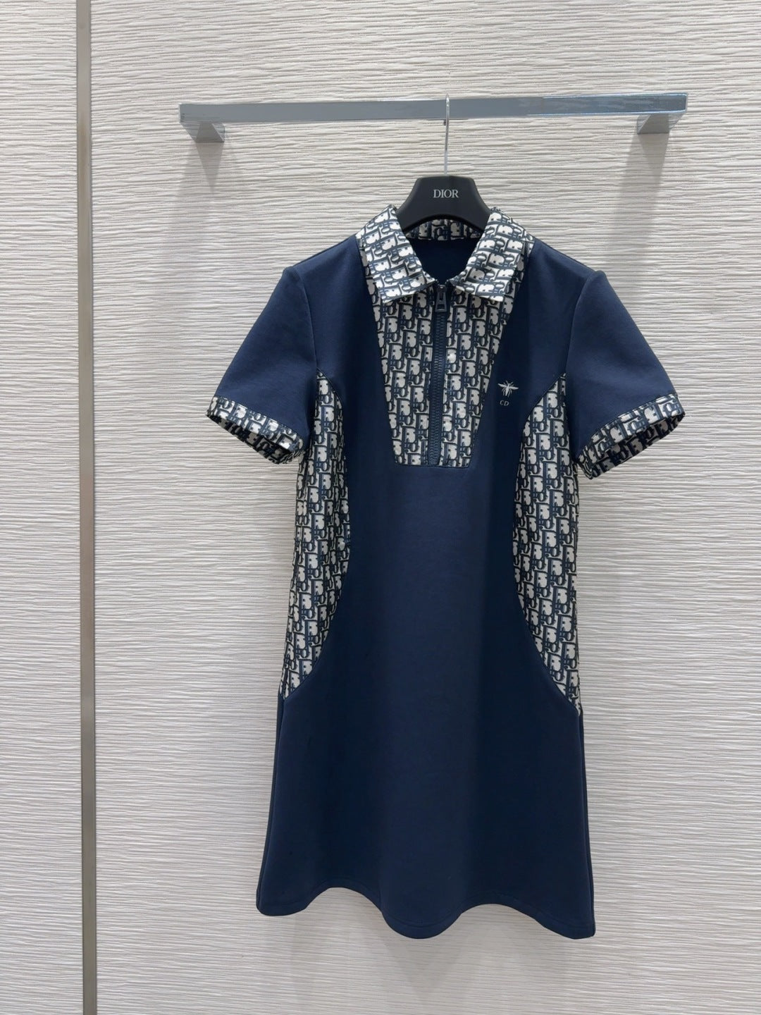 CD 25 Monogram Dress Blue mix Beige Polyester