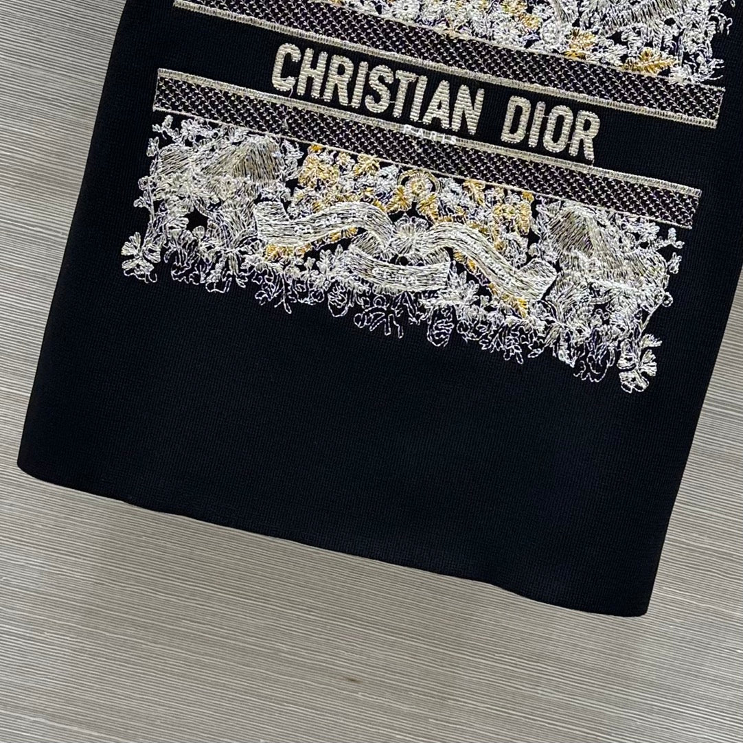 CD 25 Star Embroidery Knitted Short-sleeved Top Black Tencel Wool