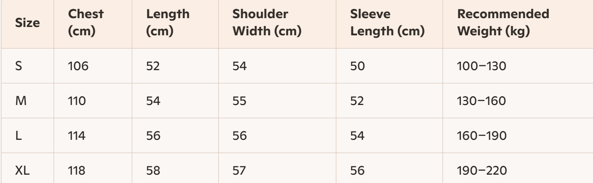 - For more information, please see the size guide below