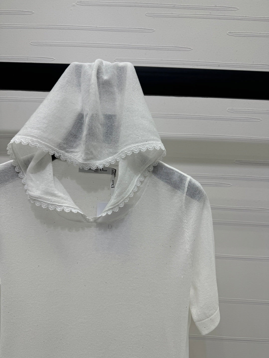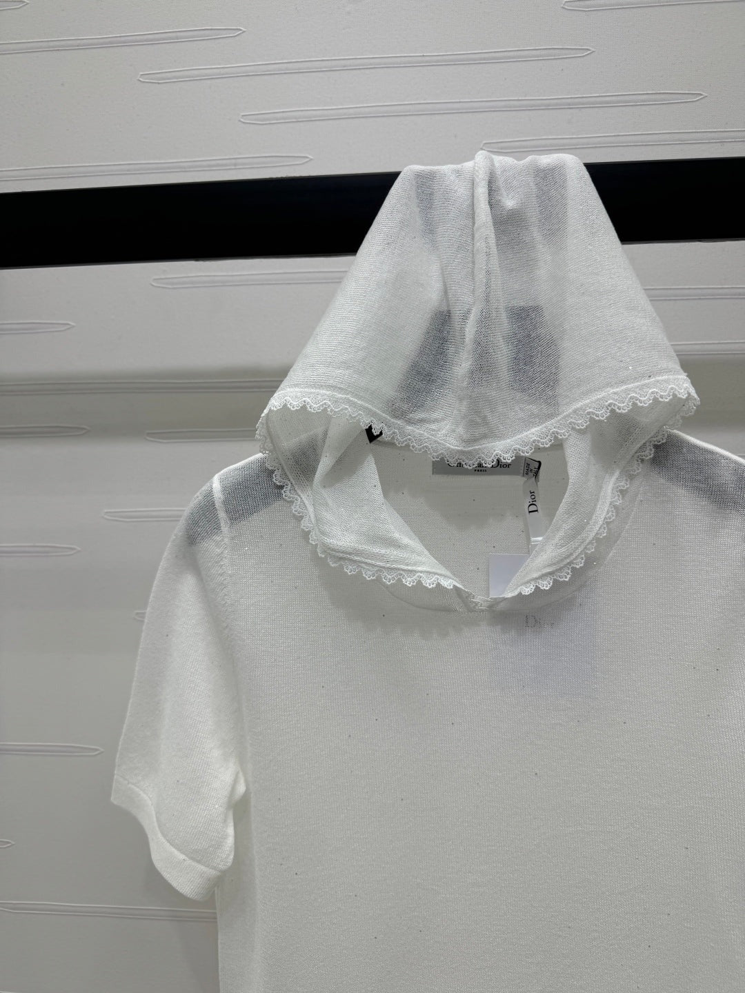 DIOR SHORT-SLEEVE LACE-KNIT HOODIE 274811
