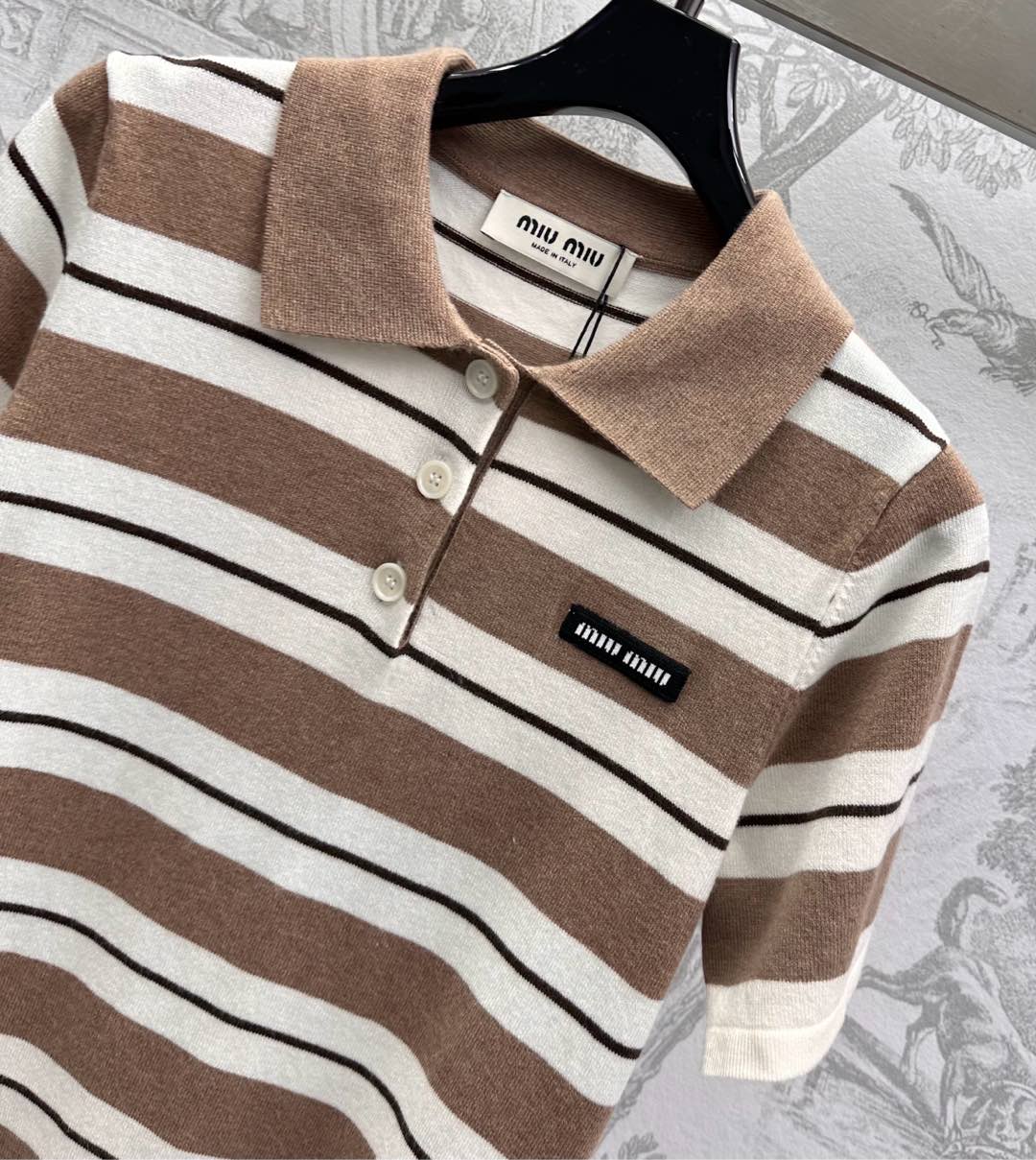 Miu 25 Polo T-Shirt Brown mix Beige Virgin Wool 233466