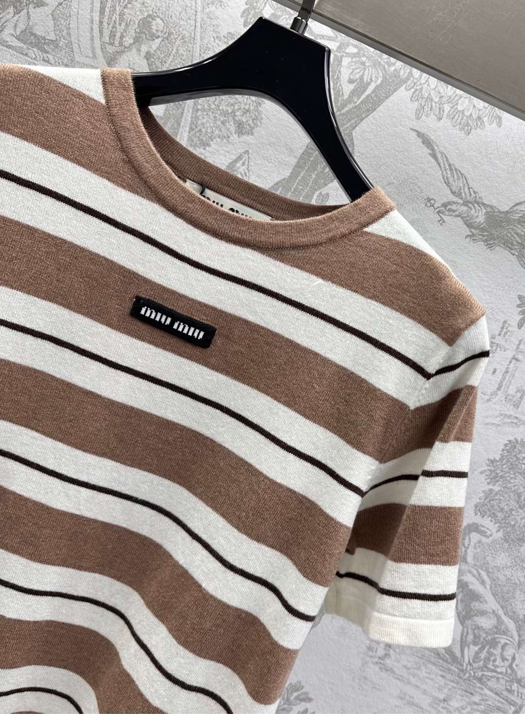 Miu 25 T-Shirt Brown mix Beige Virgin Wool 233470