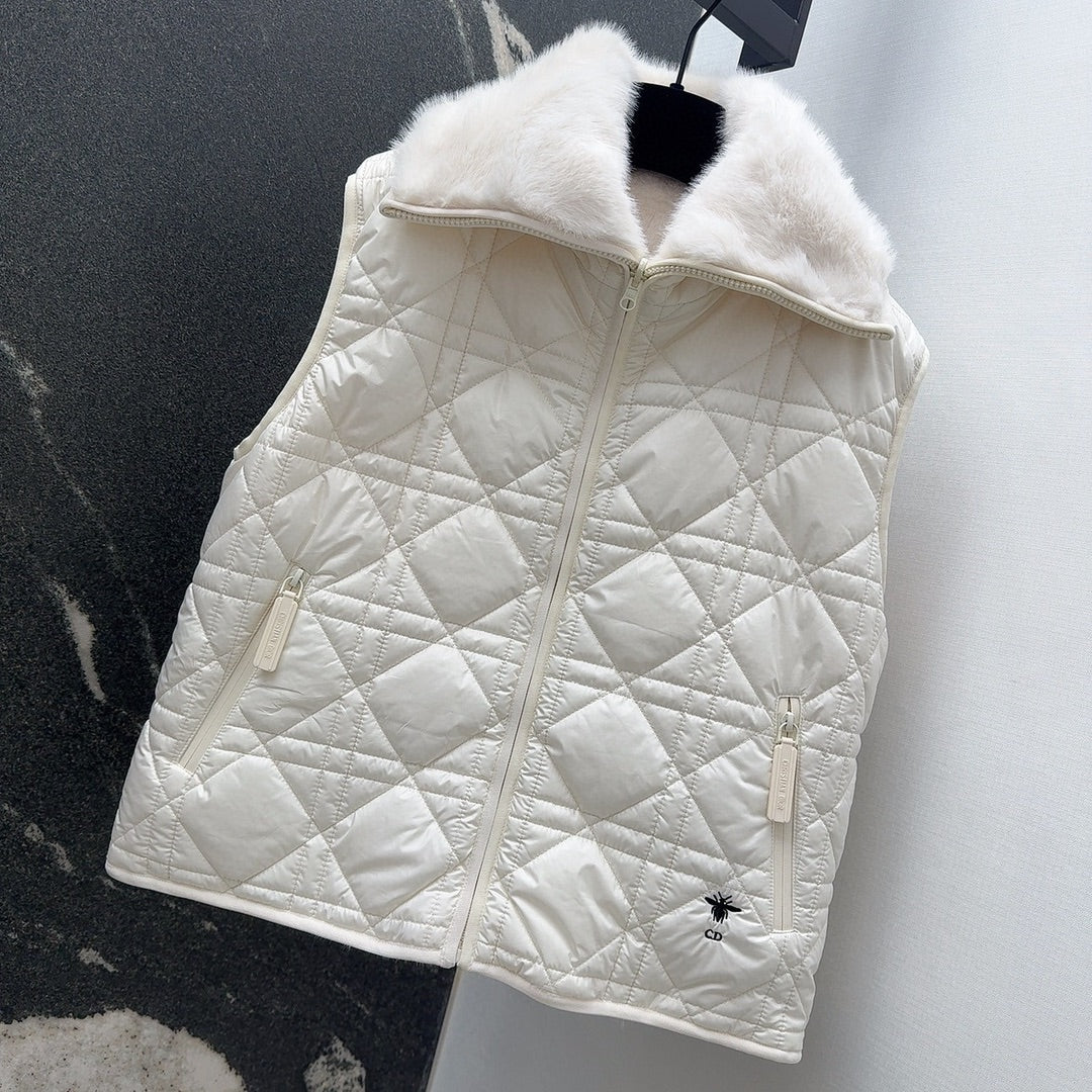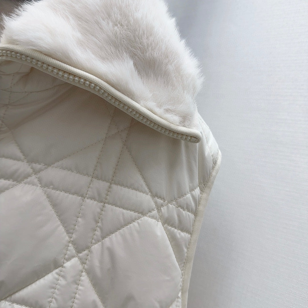 CD 25 Hooded Vest Leather And Fur Ivory White