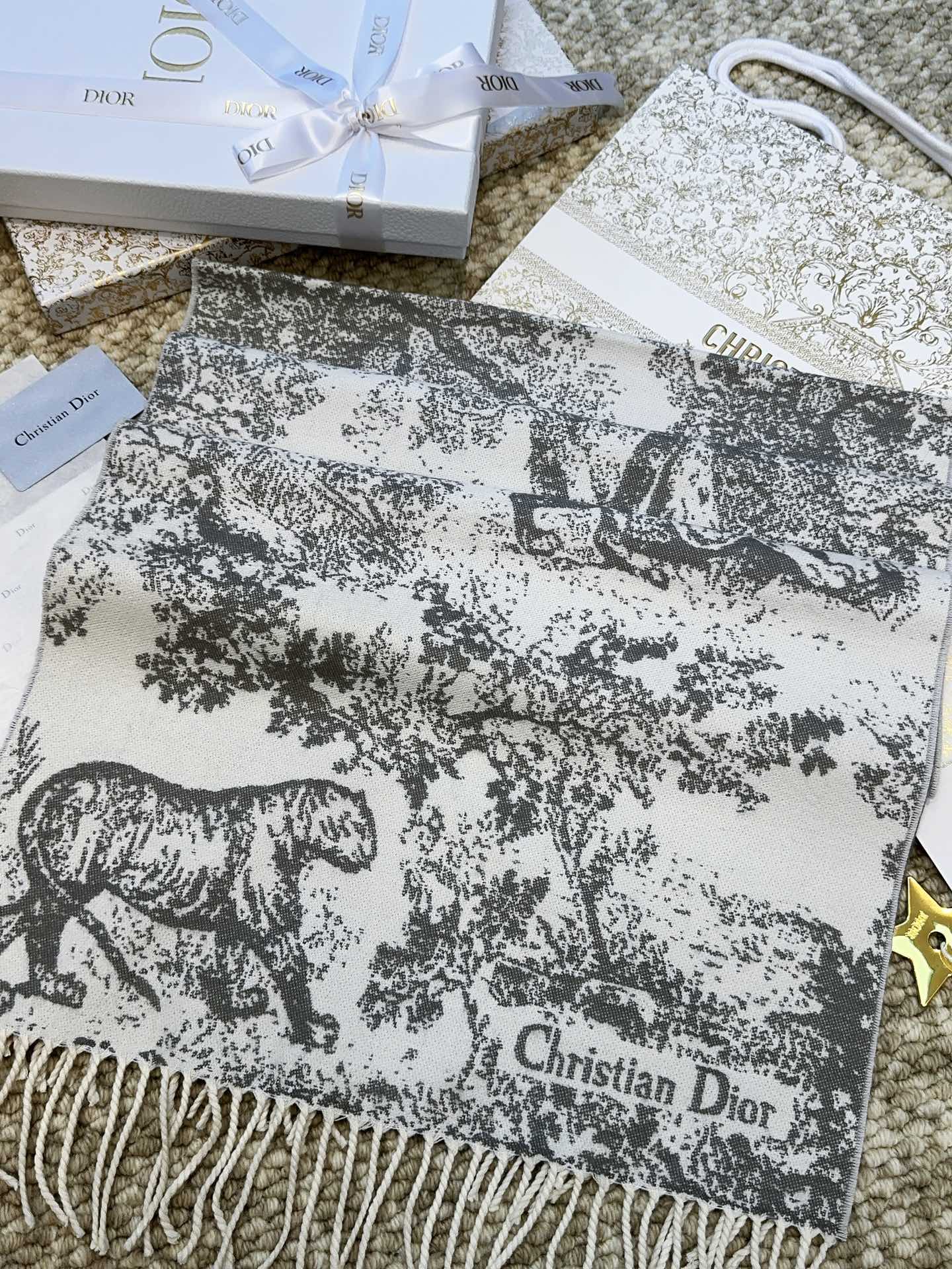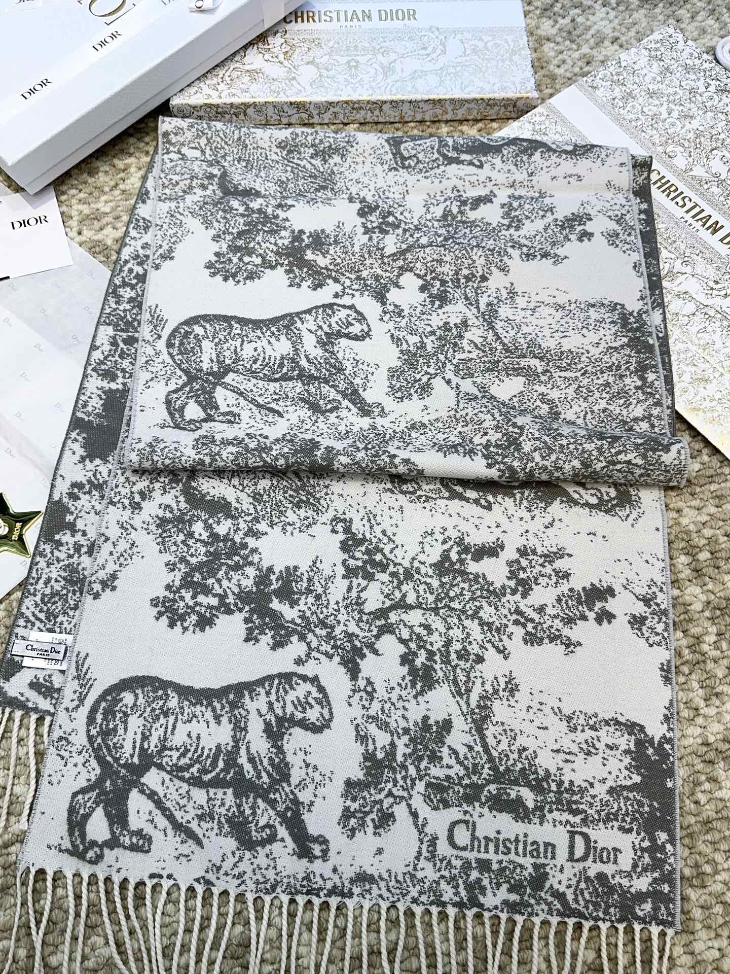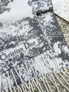 SCARF 220 CM IN WHITE MIX LIGHT GRAY MONOGRAM CASHMERE AND WOOL 413657