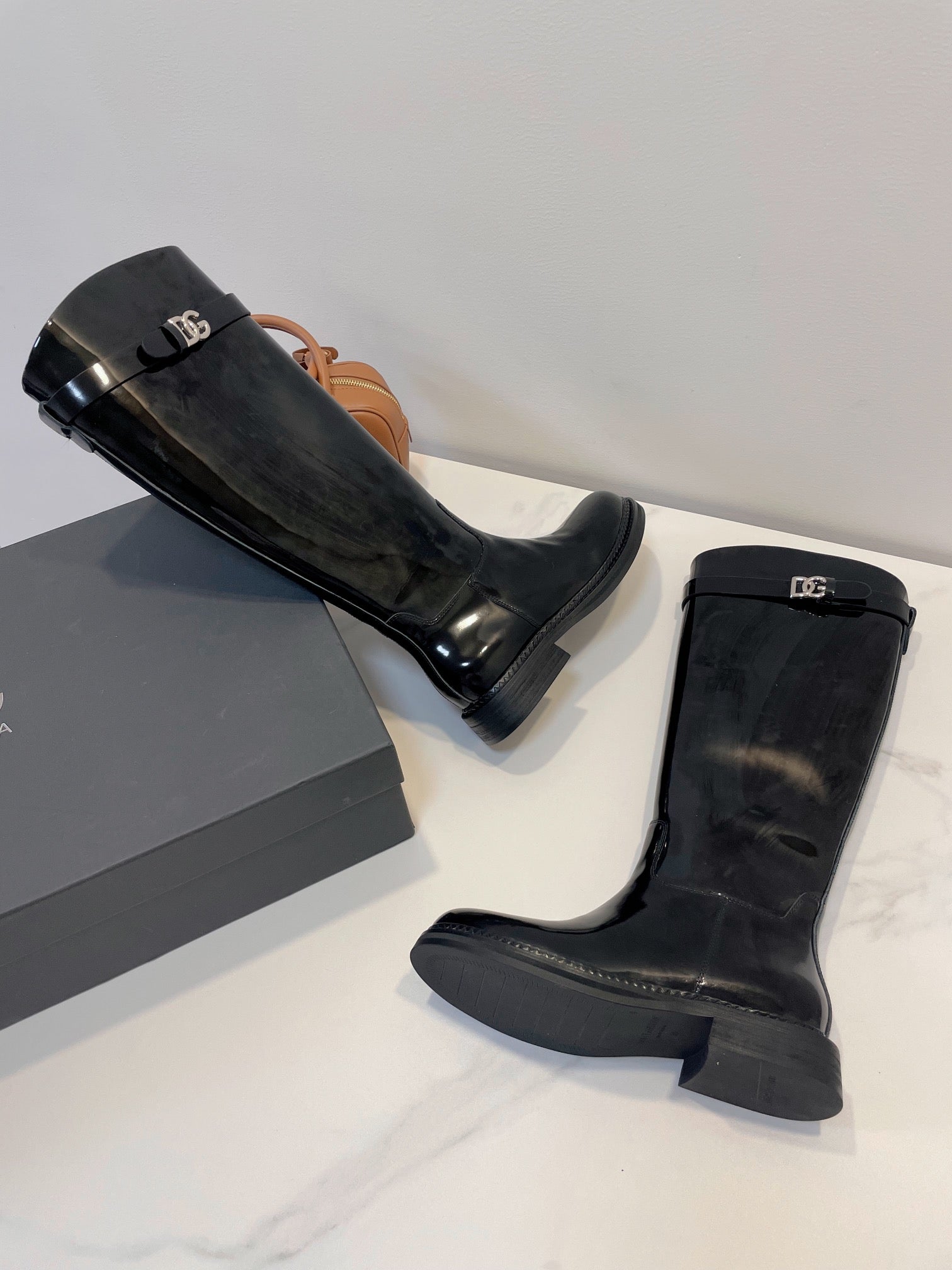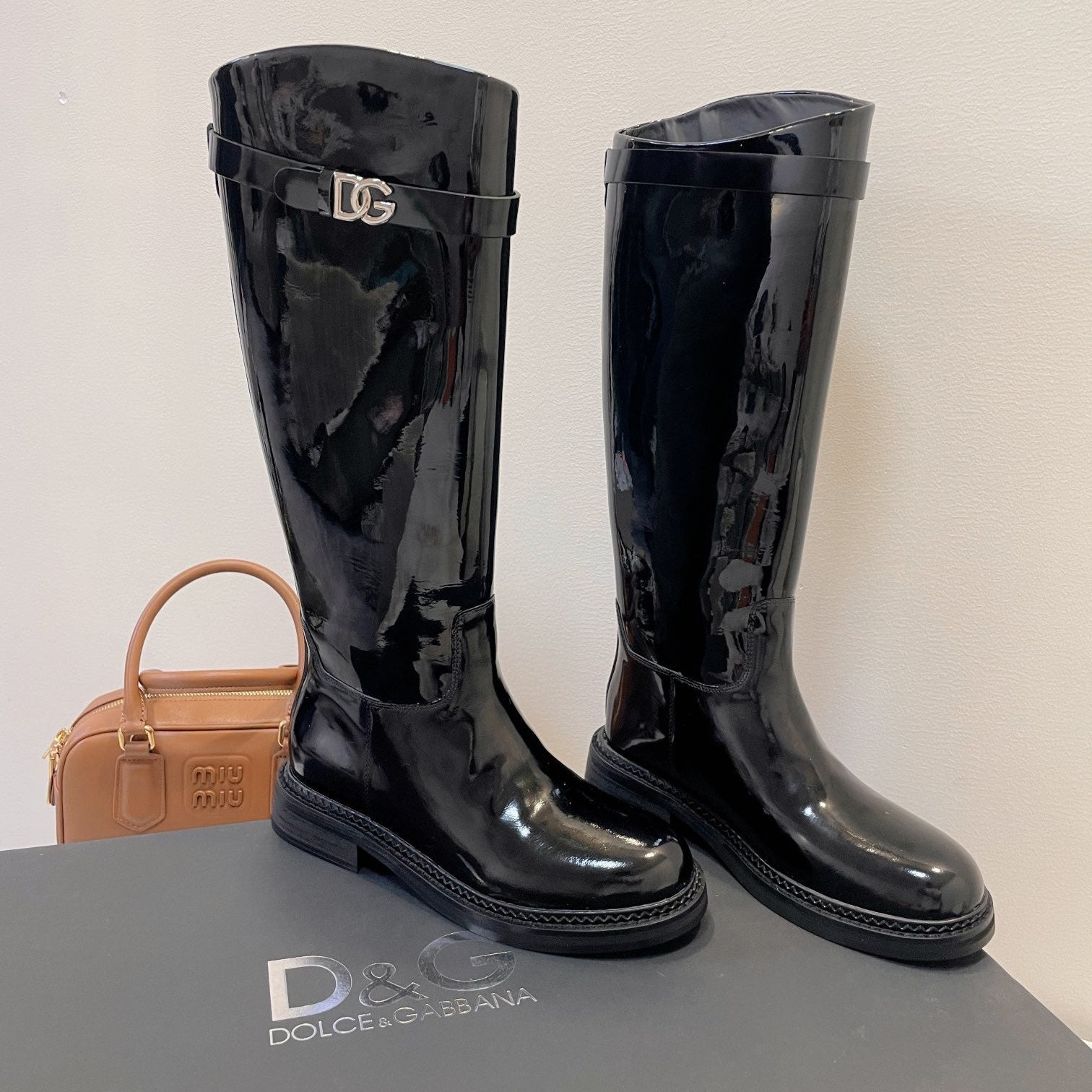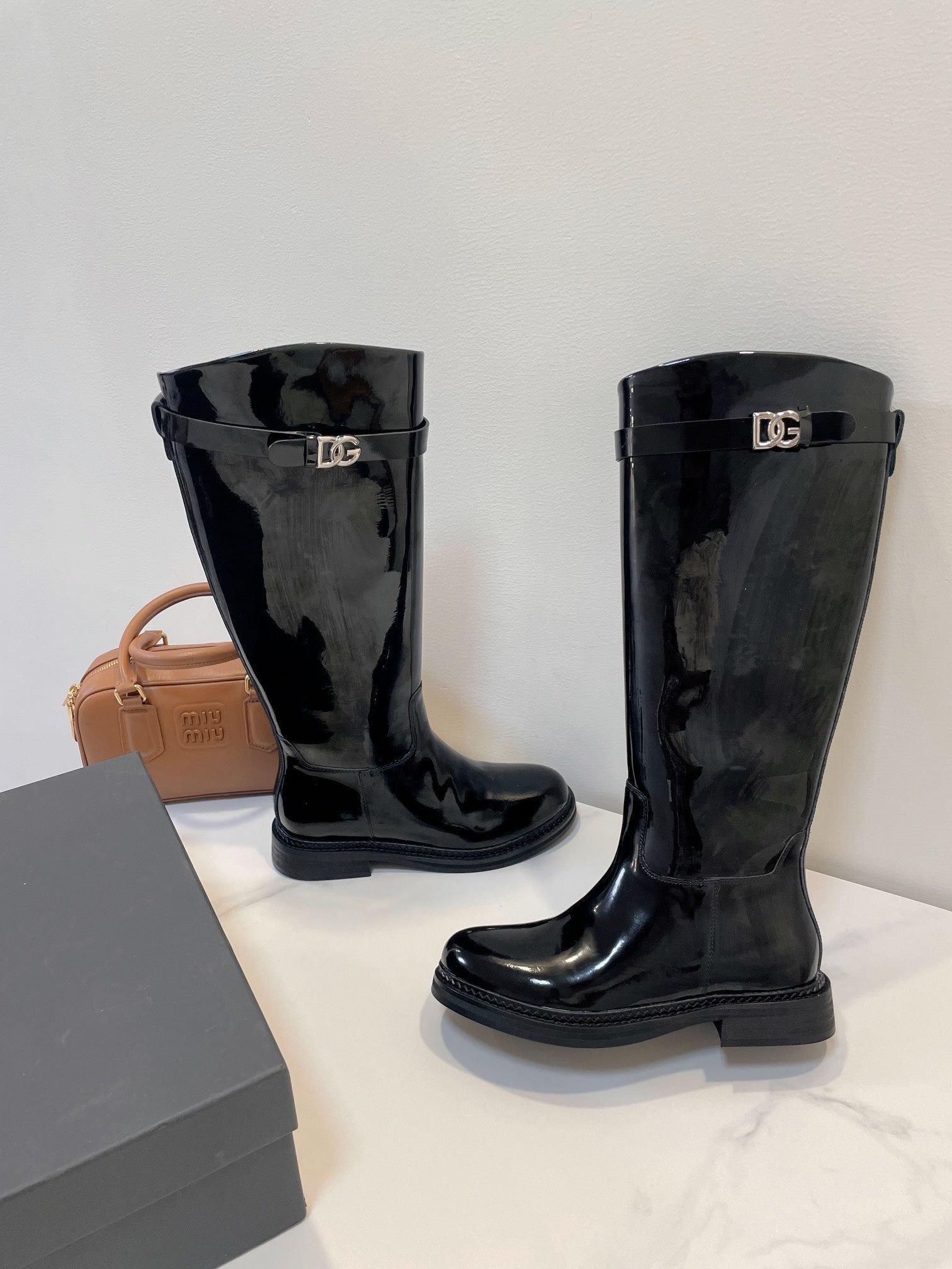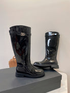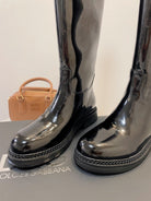 DC 24 Knee-High Boots Black Cowhide Patent & Nubuck 982194
