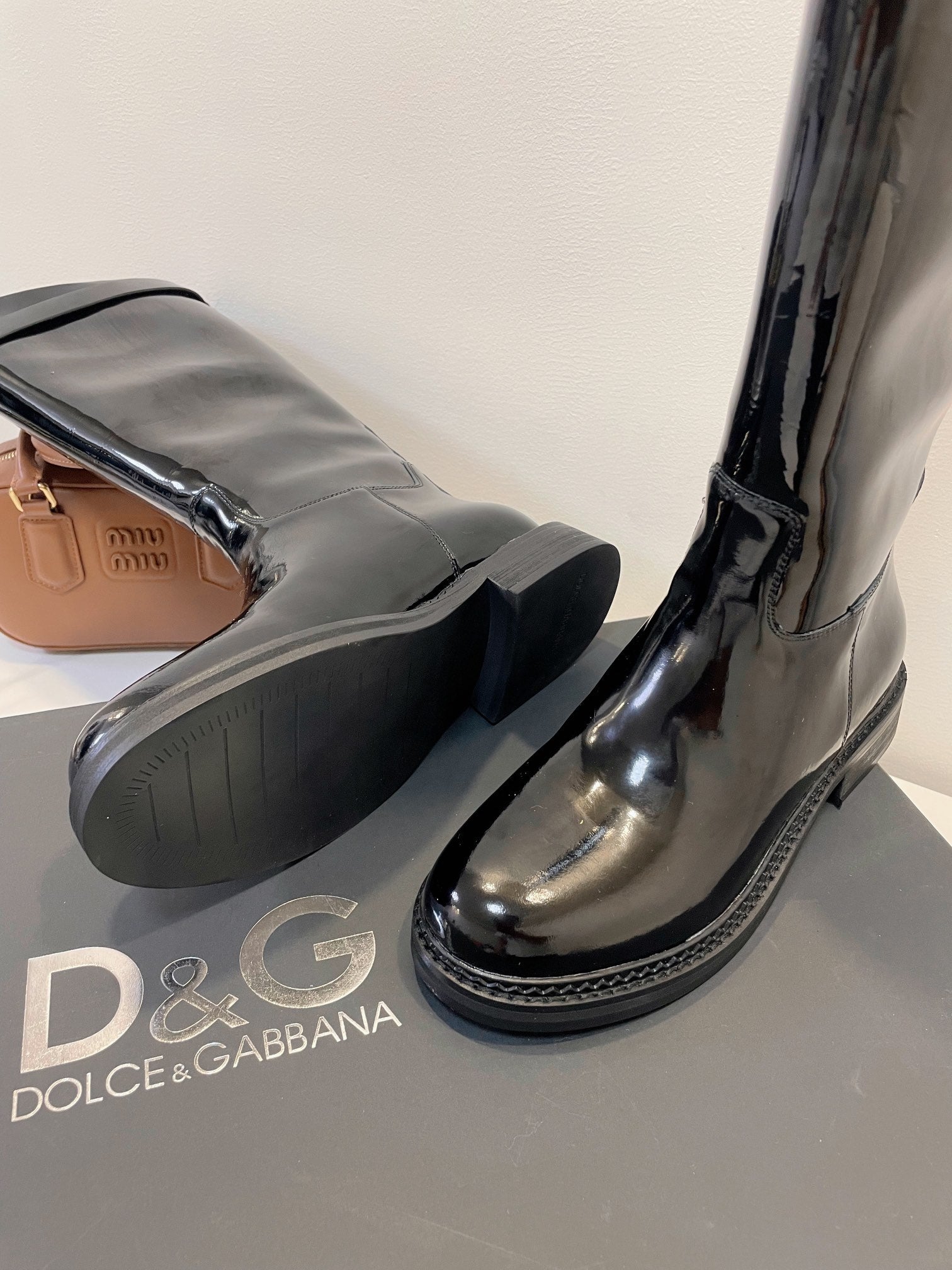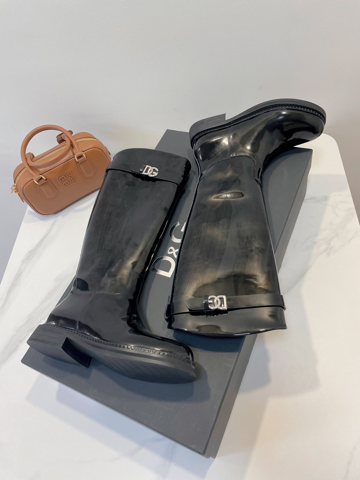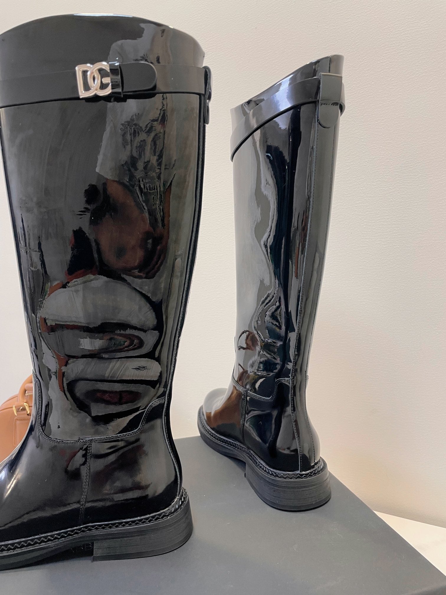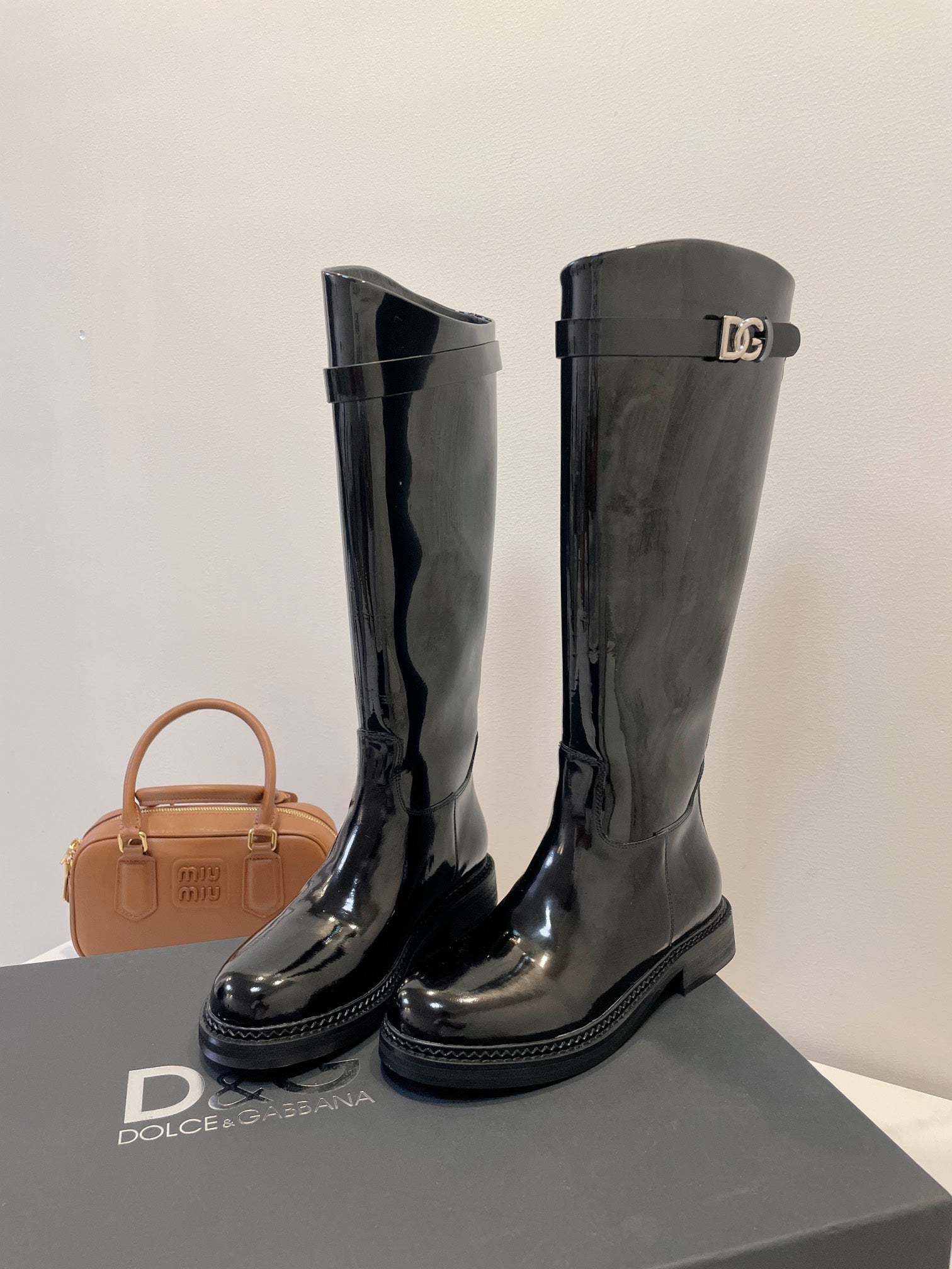 DC 24 Knee-High Boots Black Cowhide Patent & Nubuck 982194