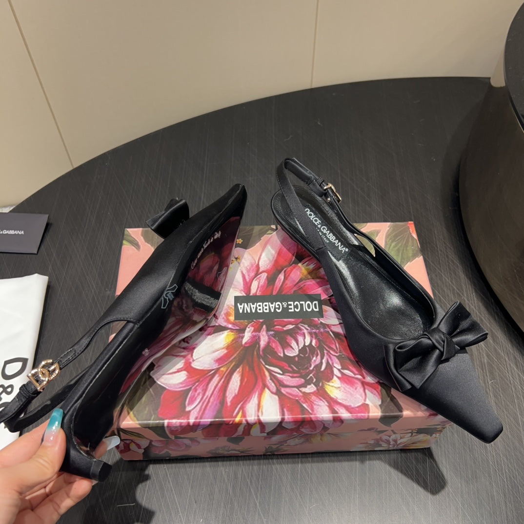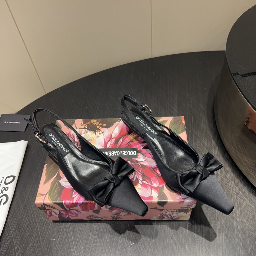 DC 25 Bow Slingback Pumps Black Silk And Sheepskin 381616