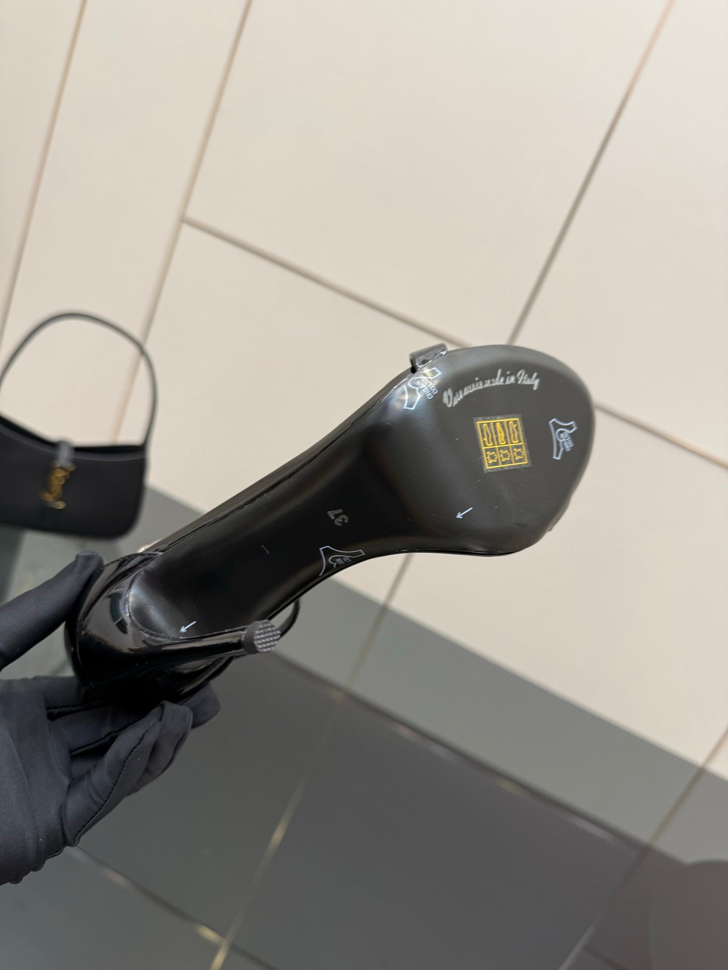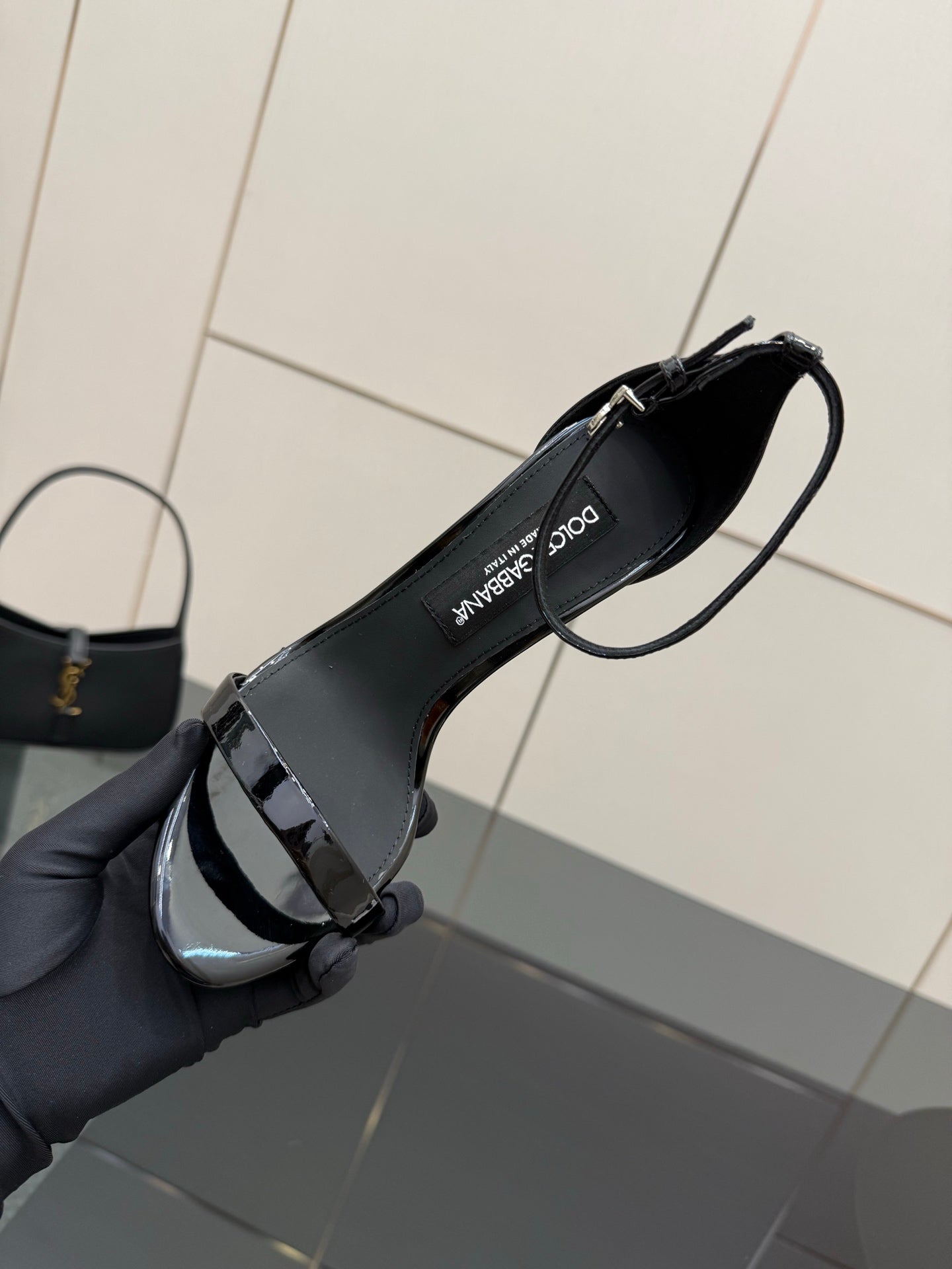 DC 25 Buckled High-Heeled Sandals Black Patent Leather & Sheepskin 326383