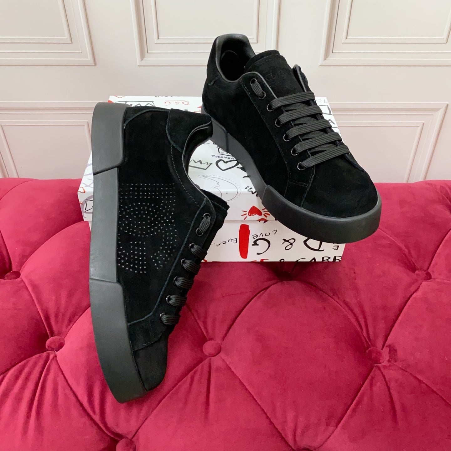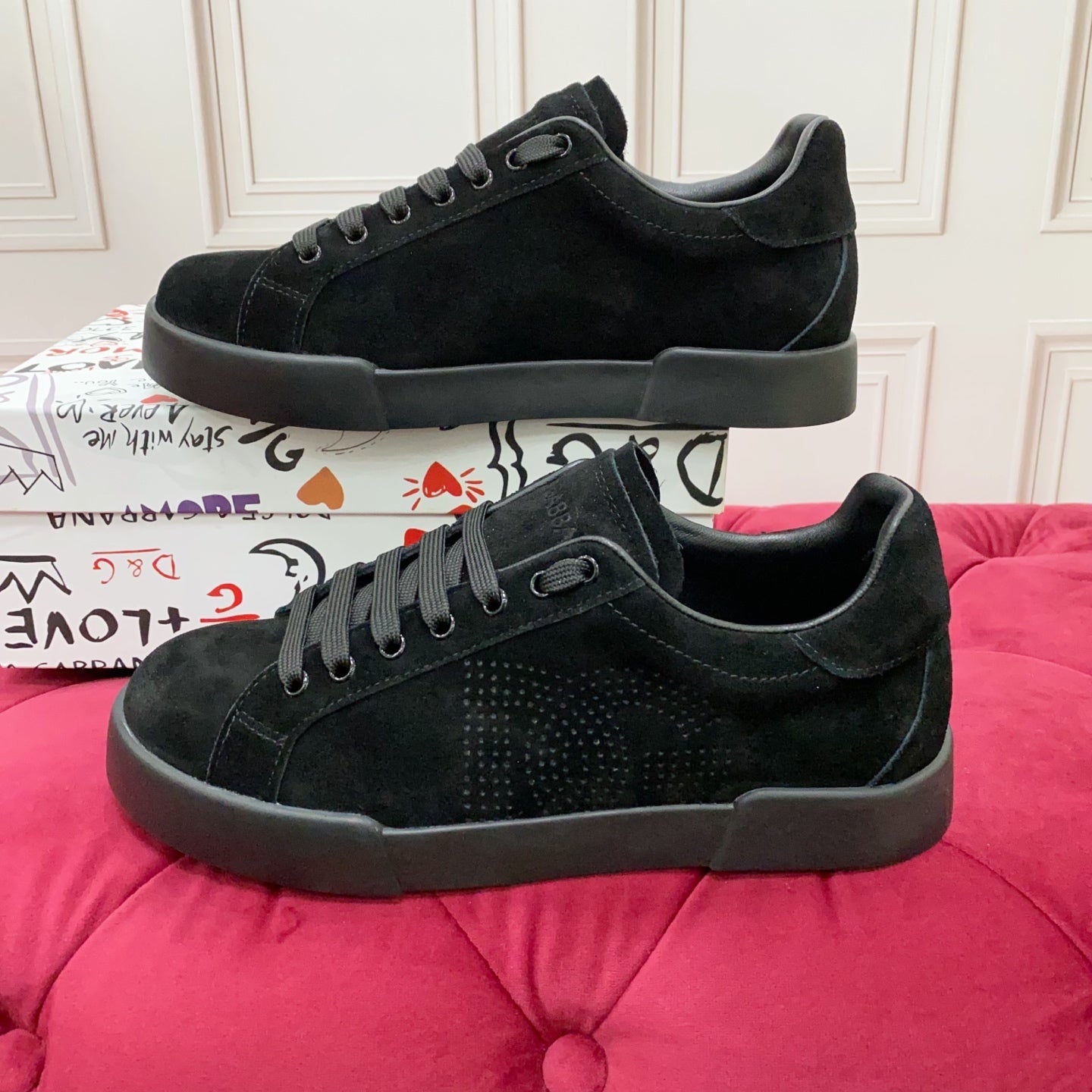 DC 25 Portofino Sneakers Black Suede & Sheepskin 333873