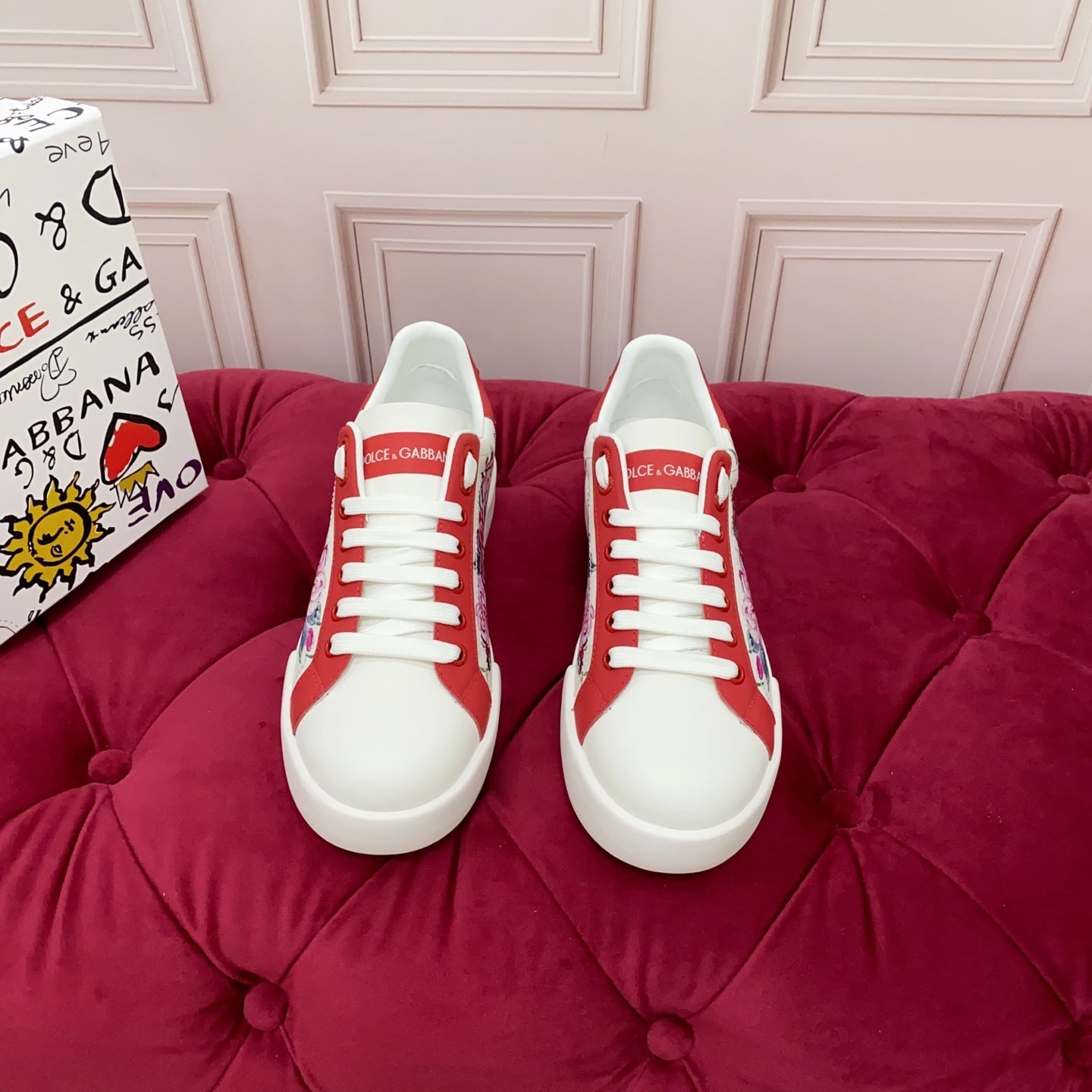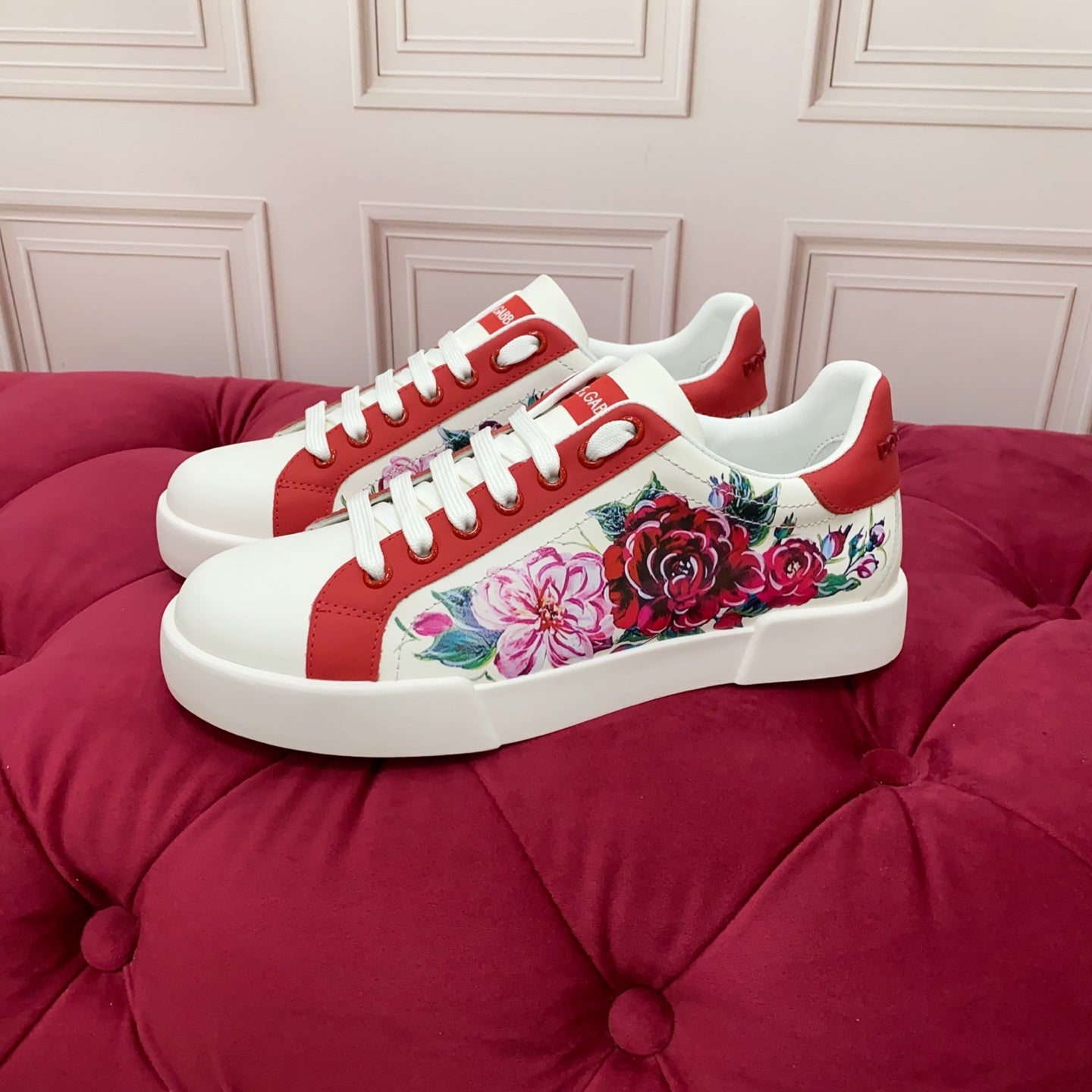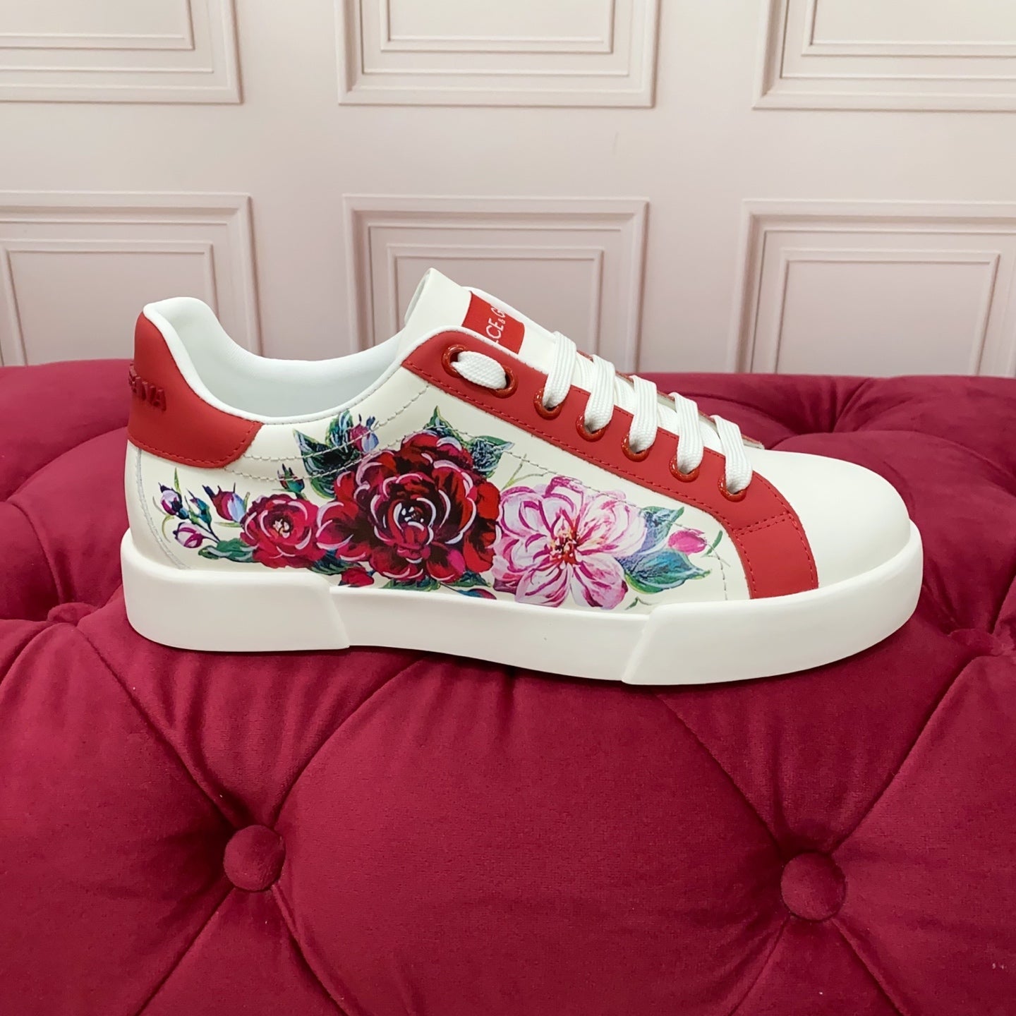DC 25 Portofino Sneakers White Red Floral-Print Cowhide 354914