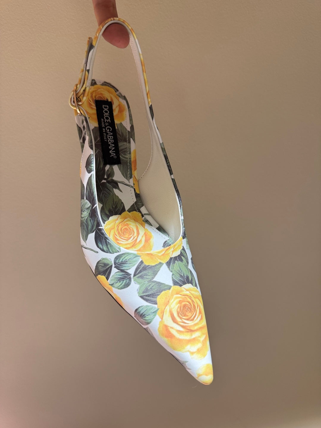 DC Slingback Pumps 65mm Yellow Rose-Print Genuine And Sheepskin 379287