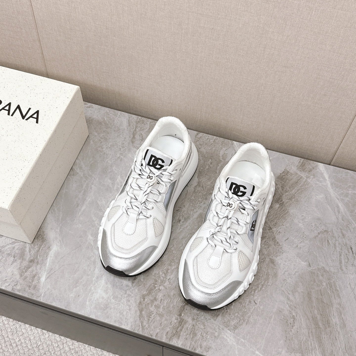 DC Chunky Sneakers White Silver Cowhide & Mesh Lining 339129