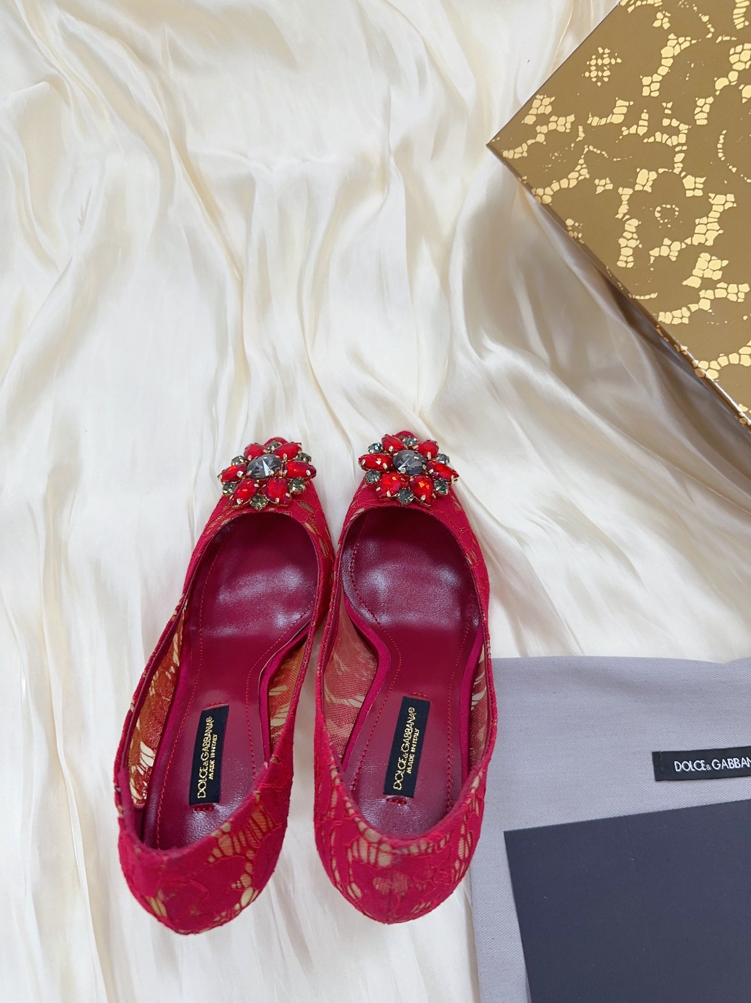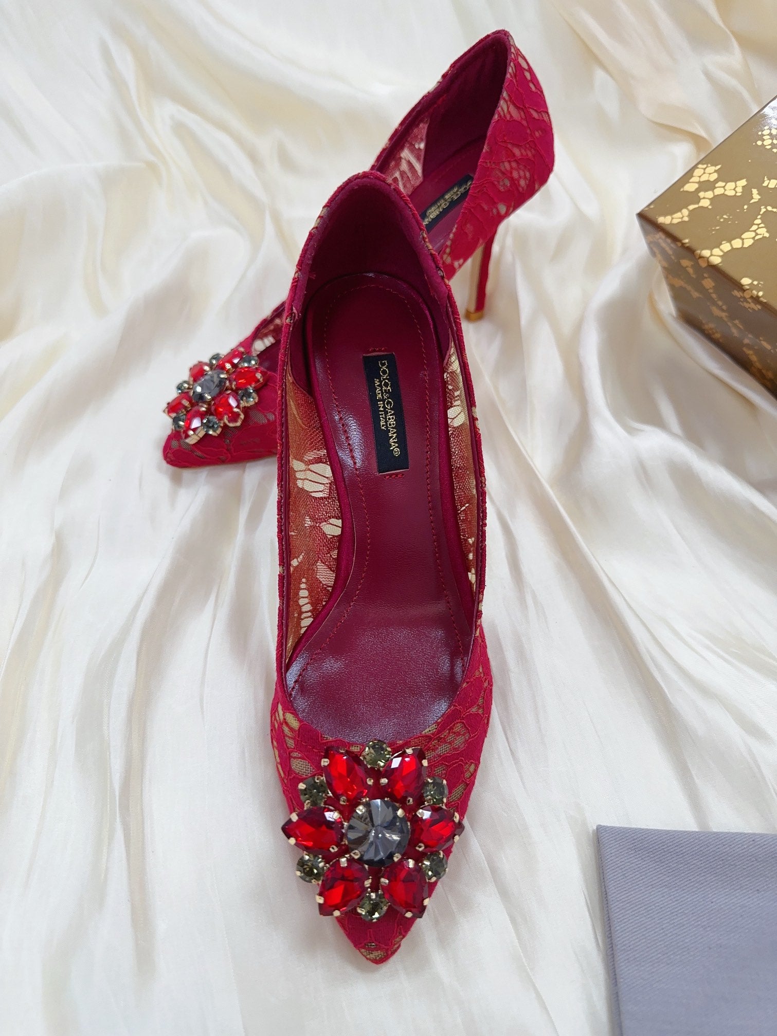 DC Floral Crystal Pumps Red Genuine Leather & Lace 324771