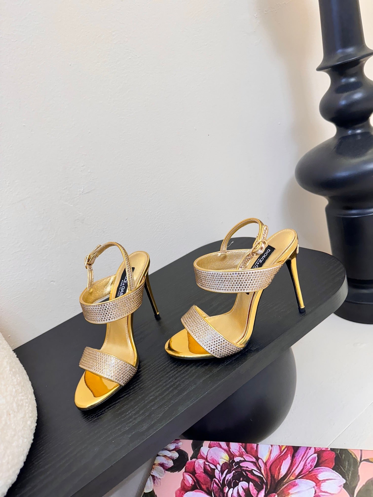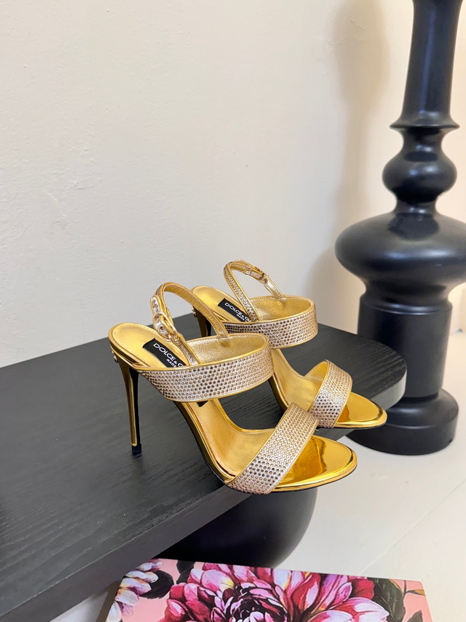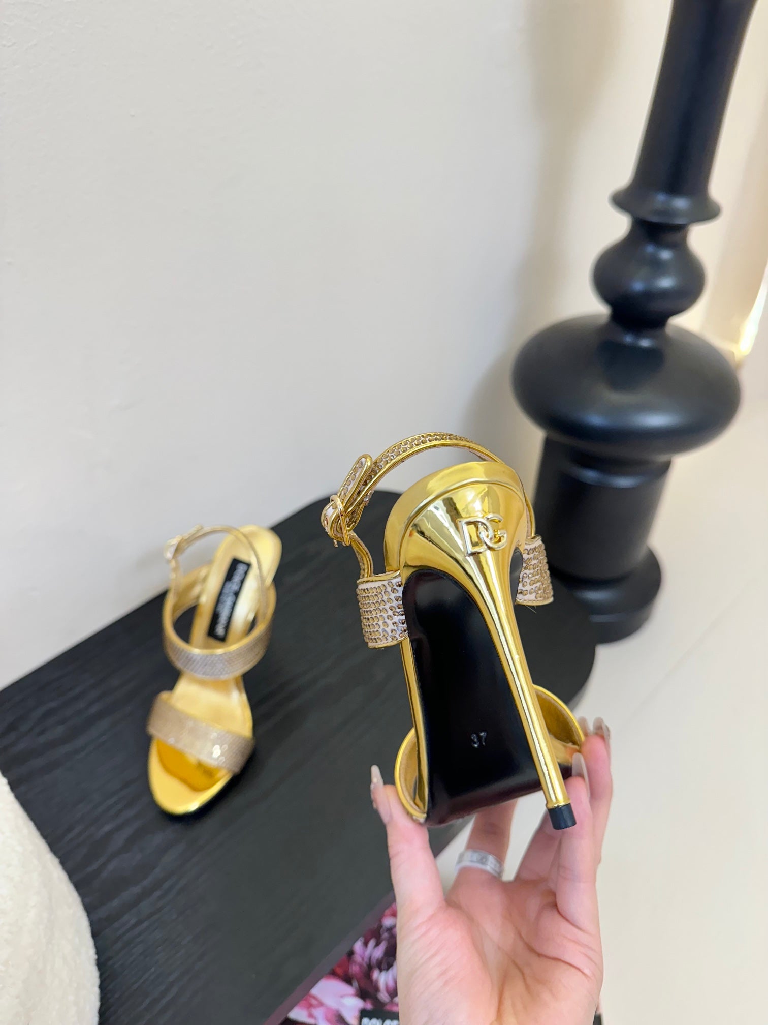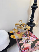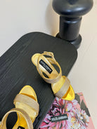 DC Satin Sandals Yellow Sheepskin & Fusible Rhinestones 313667