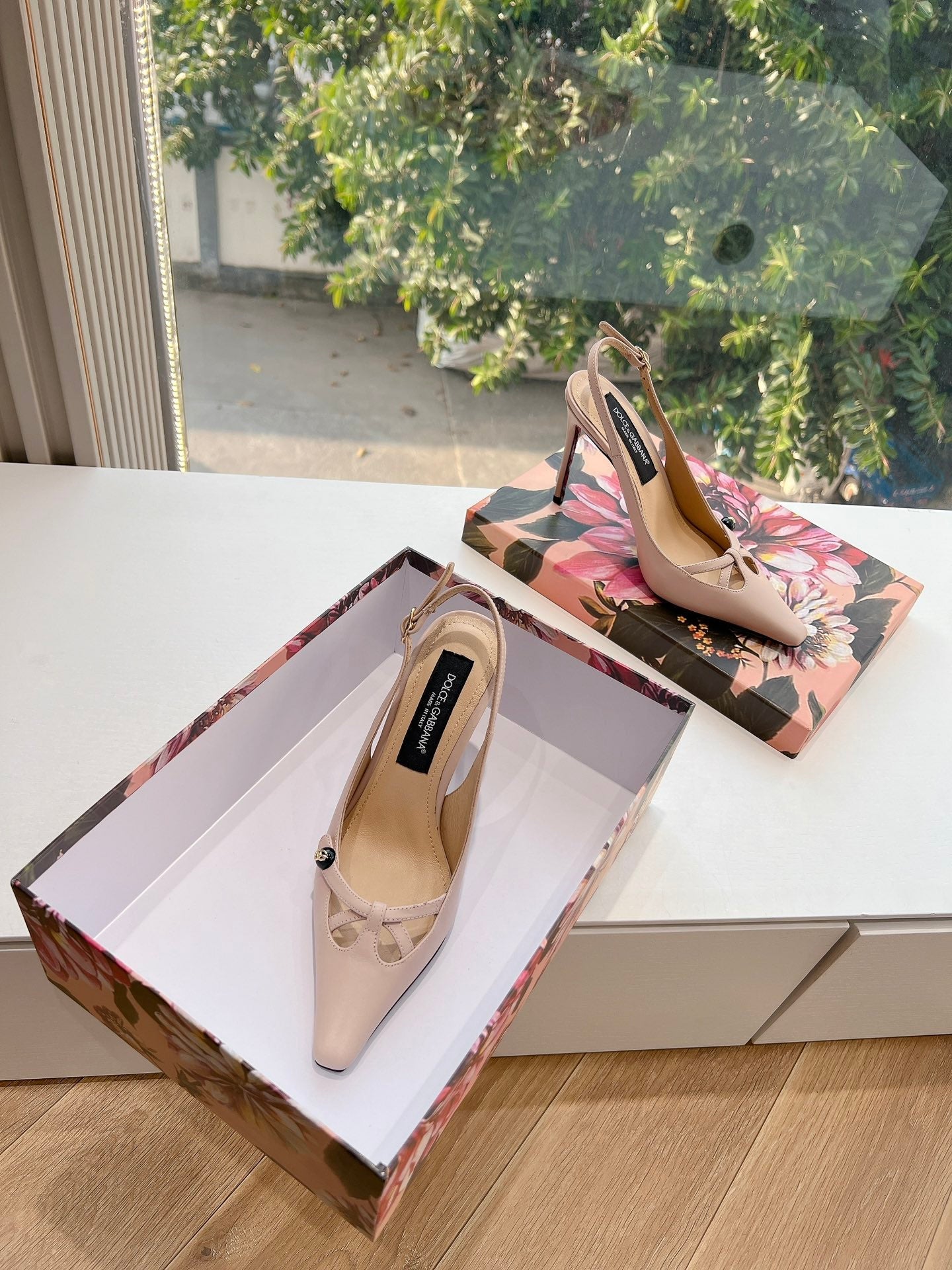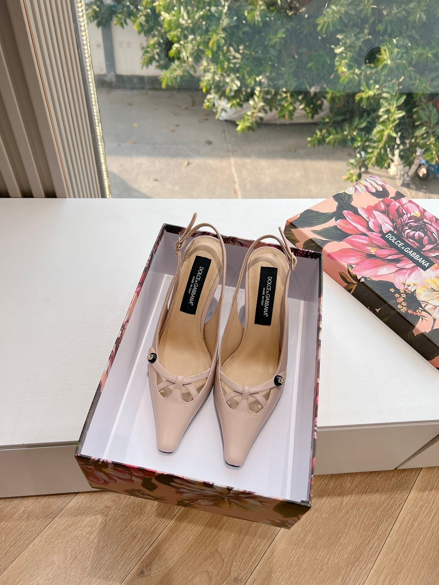 DC 25 Satin Slingbacks Beige Cowhide & Sheepskin 962756
