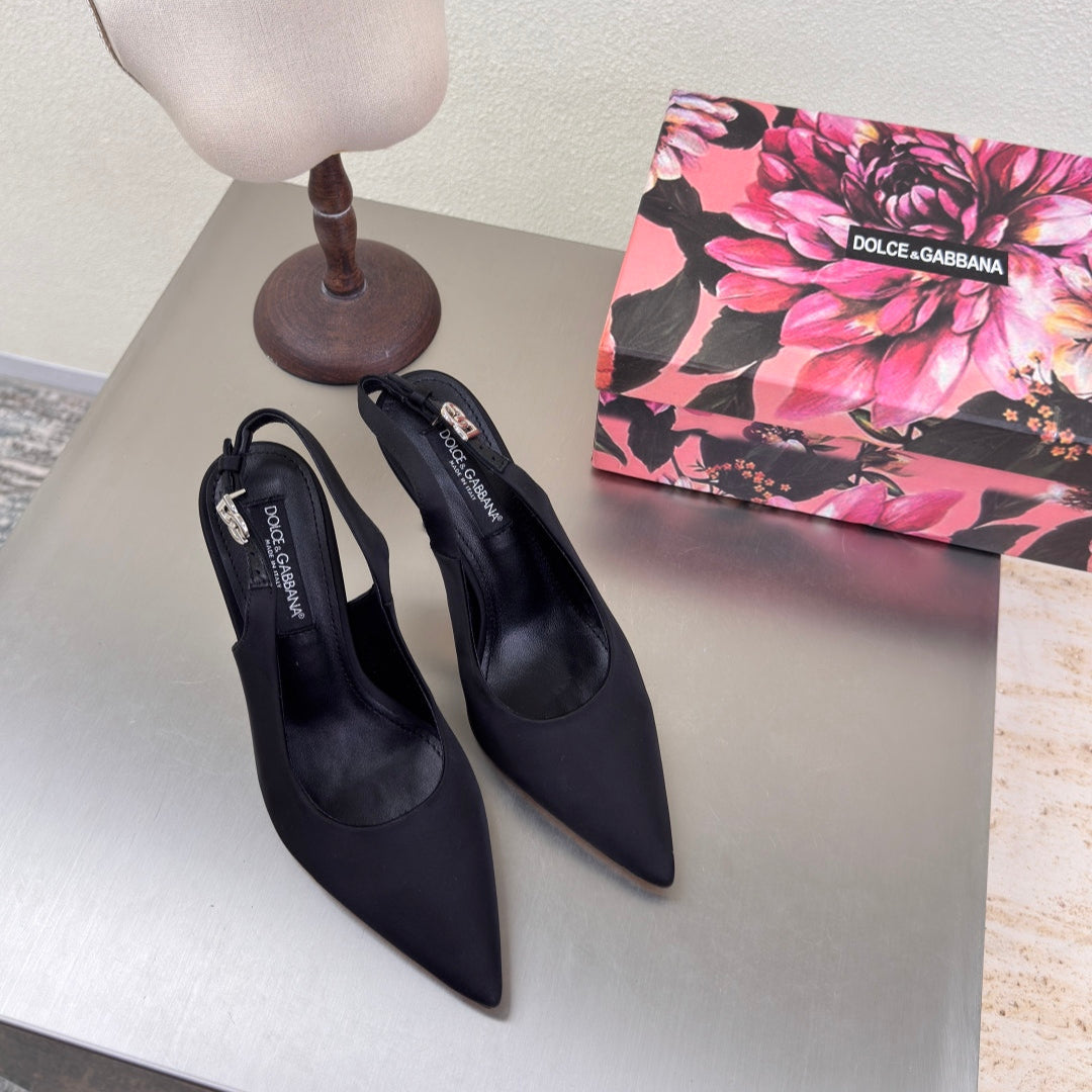 DC Slingback Pumps Black Silk & Sheepskin 343141