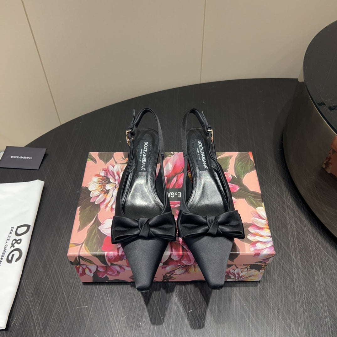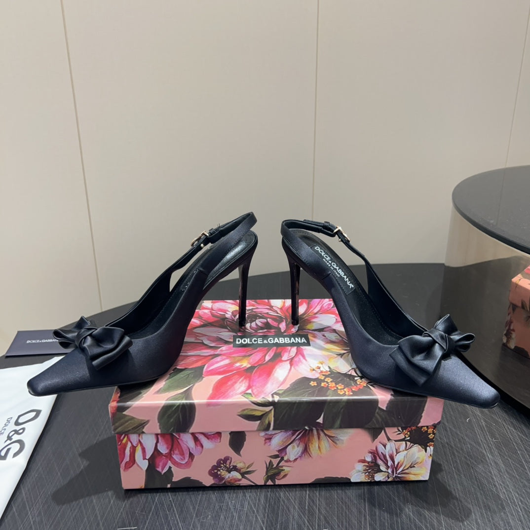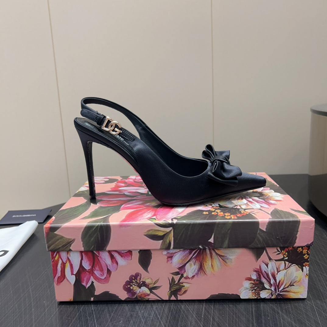 DC 25 Toe Bow Slingback Pumps 100mm Black Silk And Sheepskin 381612