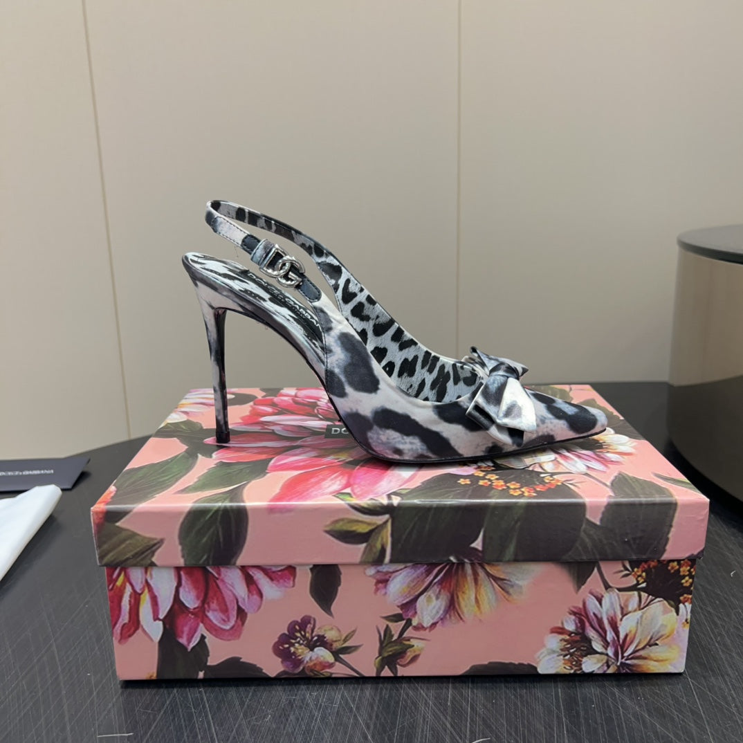 DC 25 Bow Slingback Pumps 100mm Leopard-Print Satin And Sheepskin 381614