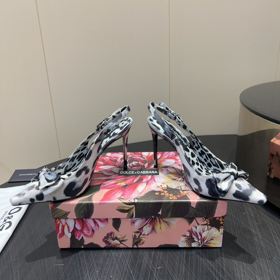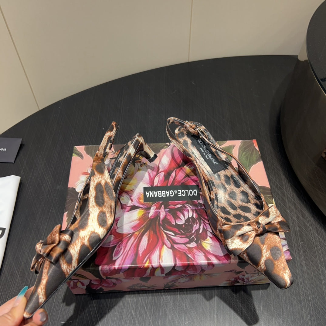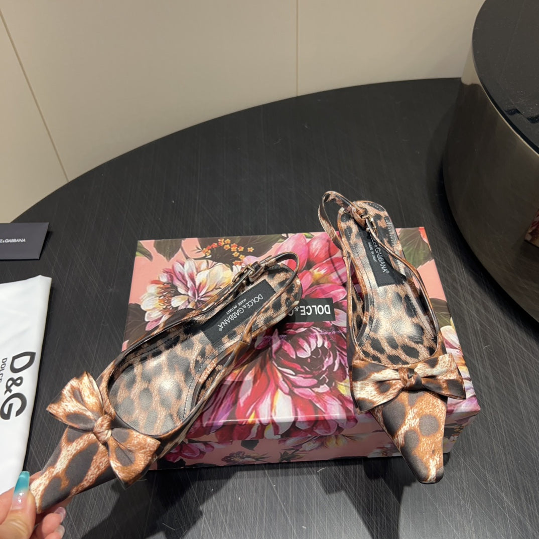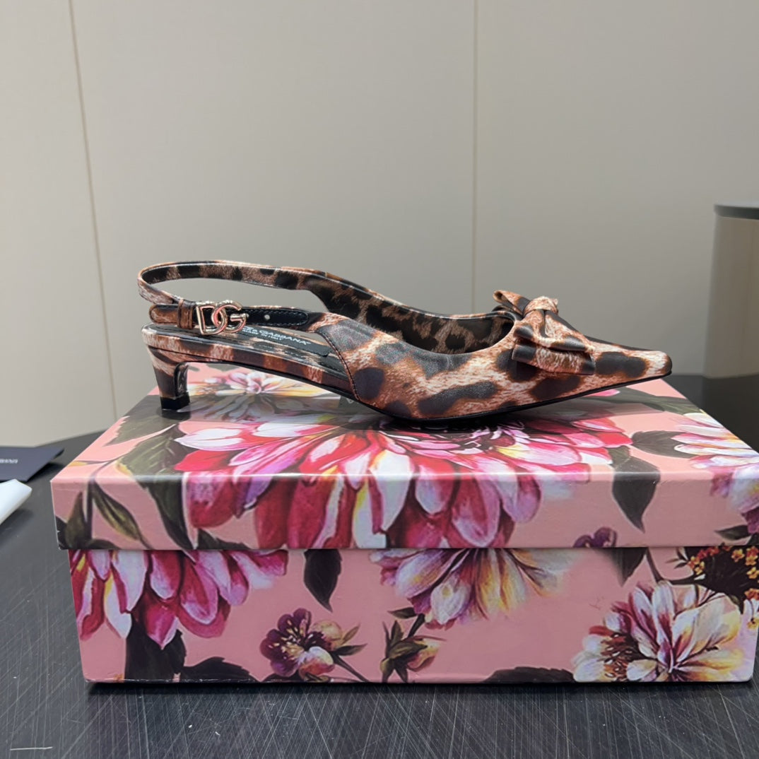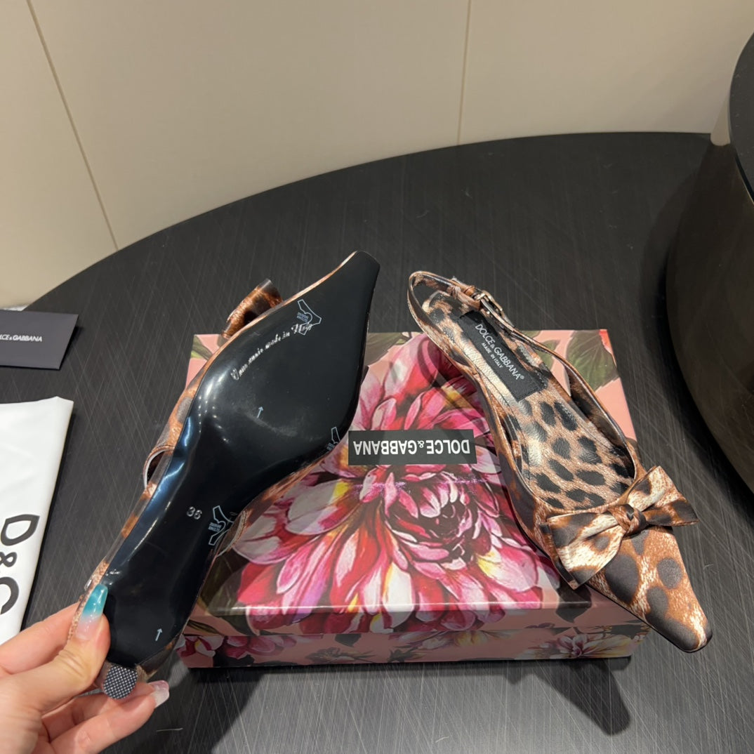 DC 25 Toe Bow High Heel Shoes 35mm Leopard-Print Silk And Sheepskin 381611