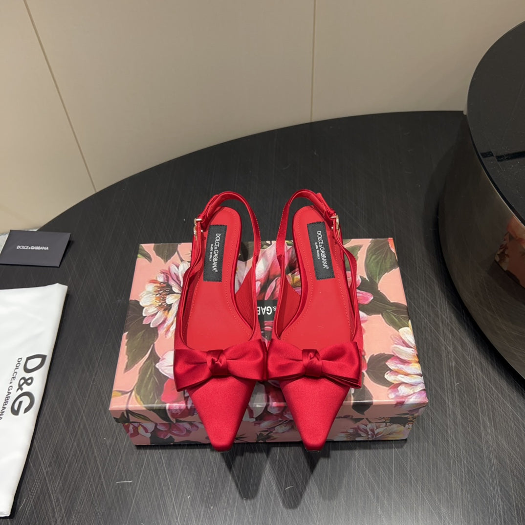 DC 25 Bow Slingback Pumps Red Silk And Sheepskin 381617