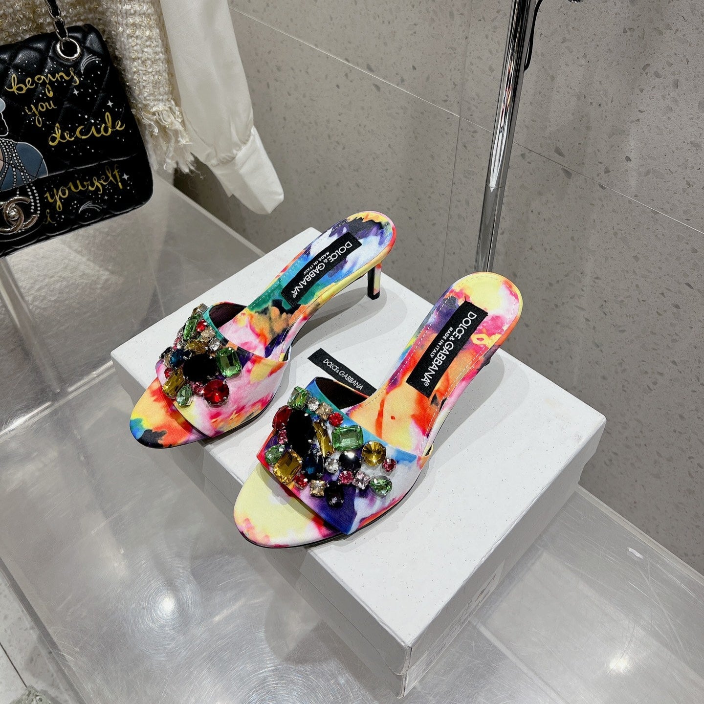 DC Rhinestone Mules 65mm Black Silk & Sheepskin 359514