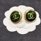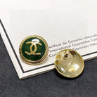 CC LIGHT GOLD GREEN ENAMEL CIRCLE STUD EARRINGS