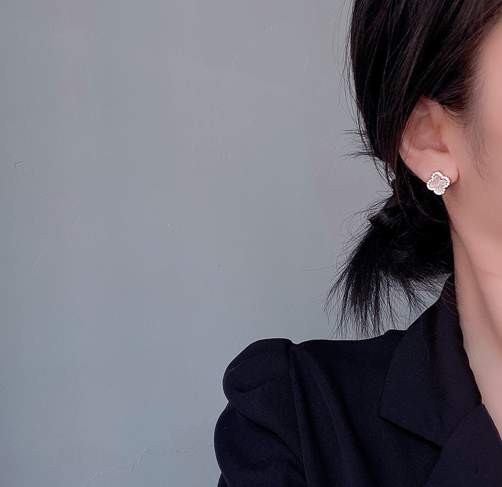 CLOVER DIAMOND PINK GOLD STUD EARRINGS