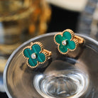 CLOVER MALACHITE DIAMOND EARRINGS