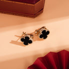 CLOVER MEDIUM ONYX PINK GODL EARRINGS