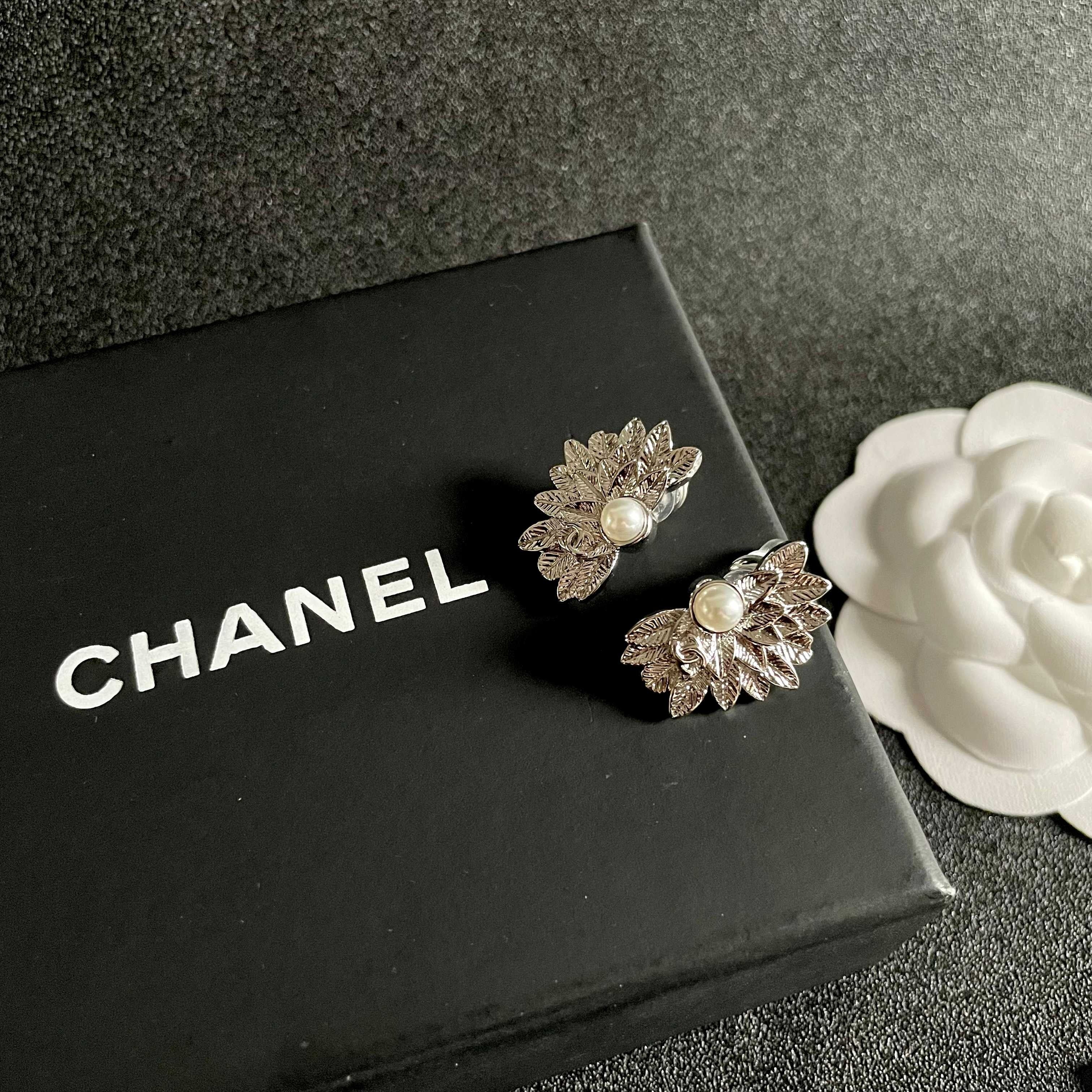 DOUBLE C STUD EARRINGS IN HALF-FLOWER SHAPE WITH PEARL CENTER