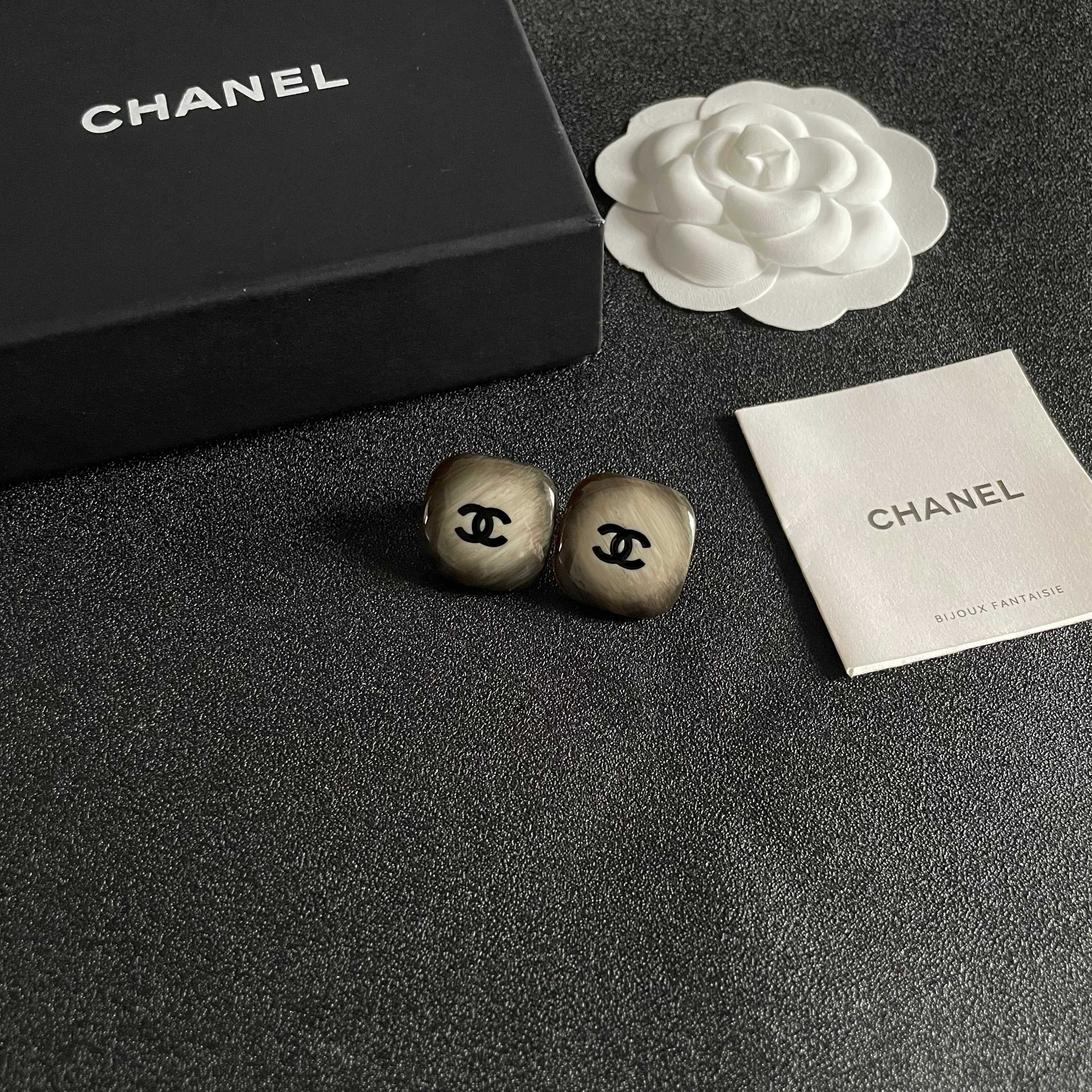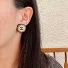 DOUBLE C STUD EARRINGS IN IVORY-TO-BROWN RESIN PATTERN