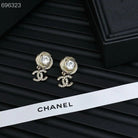 PENDANT EARRINGS IN GOLD METAL WHITE CRYSTAL TWISTED RIBBED DOUBLE C