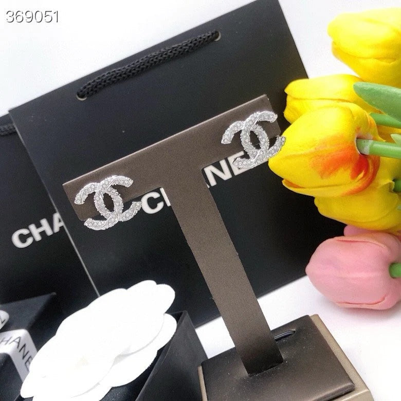 STUD EARRINGS MINI DOUBLE C TWISTED IN SILVER DIAMOND