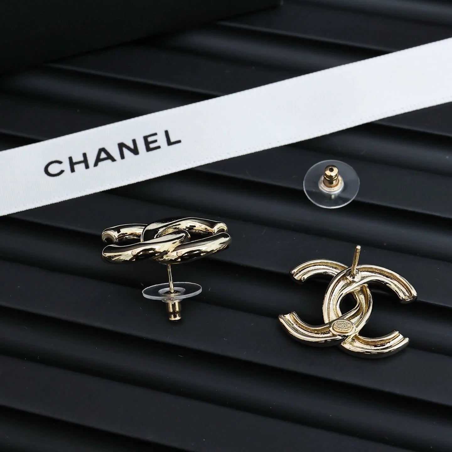 25S TWISTED RIBBED DOUBLE C STUD EARRINGS IN GOLD METAL