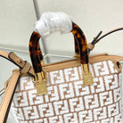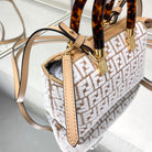 BY THE WAY MINI 18 IN WHITE WOOL AND CAMEL BROWN RAFFIA CALFSKIN TRIM