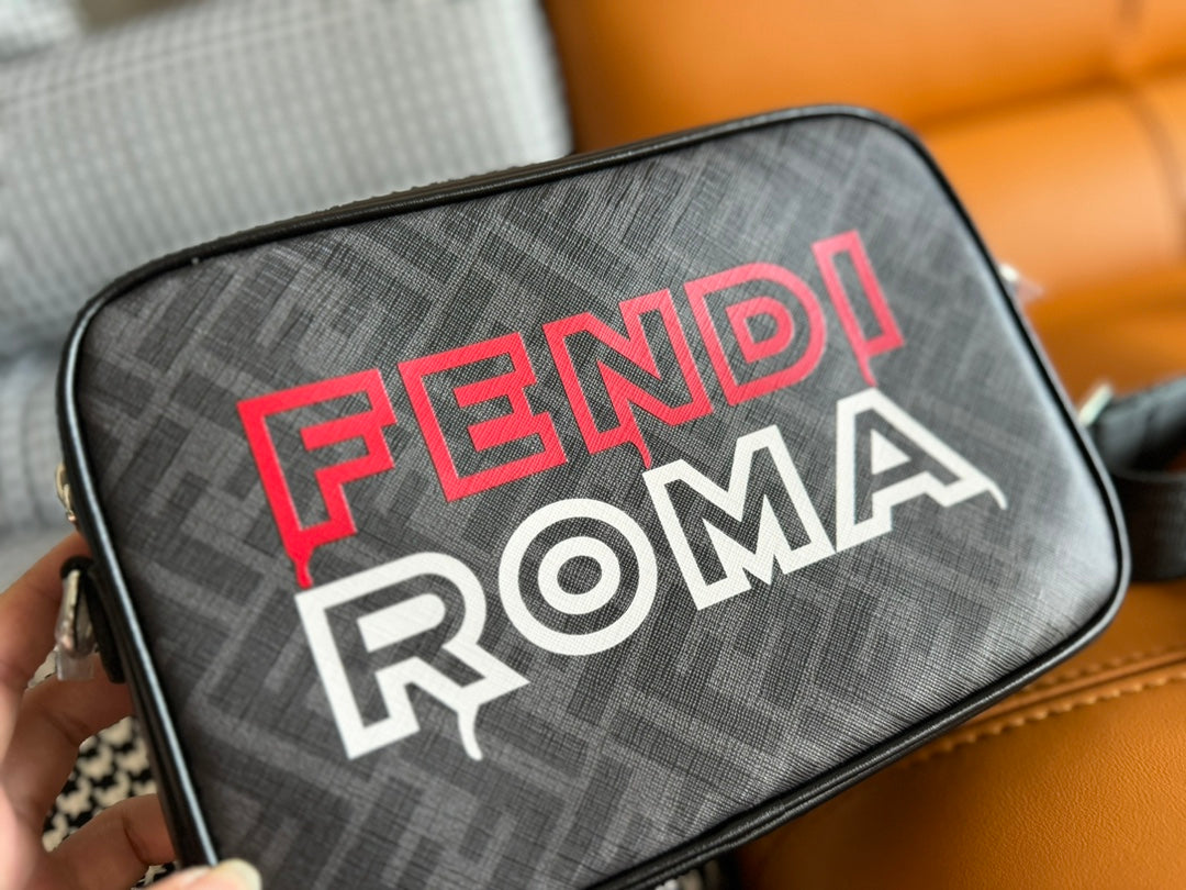 CLUTCH 22 WITH FF MOTIF IN DARK GRAY TEXTURED FABRIC AND BLACK LAMBSKIN TRIM
