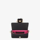 FENDI FENDACE BROOCH MINI 20 BAGUETTE BAG IN BLACK CALFSKIN