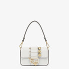 FENDI FENDACE BROOCH MINI 20 BAGUETTE BAG IN WHITE CALFSKIN