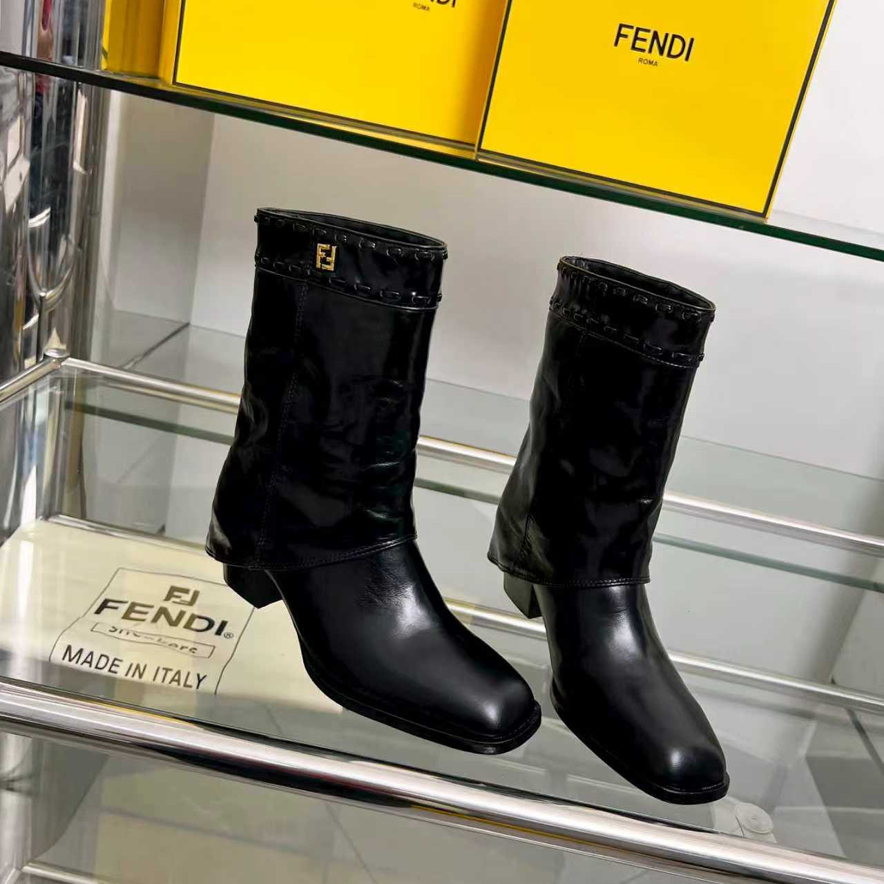 Fendi Apres Chic with FF chamois Boots Black Cowhide 475230