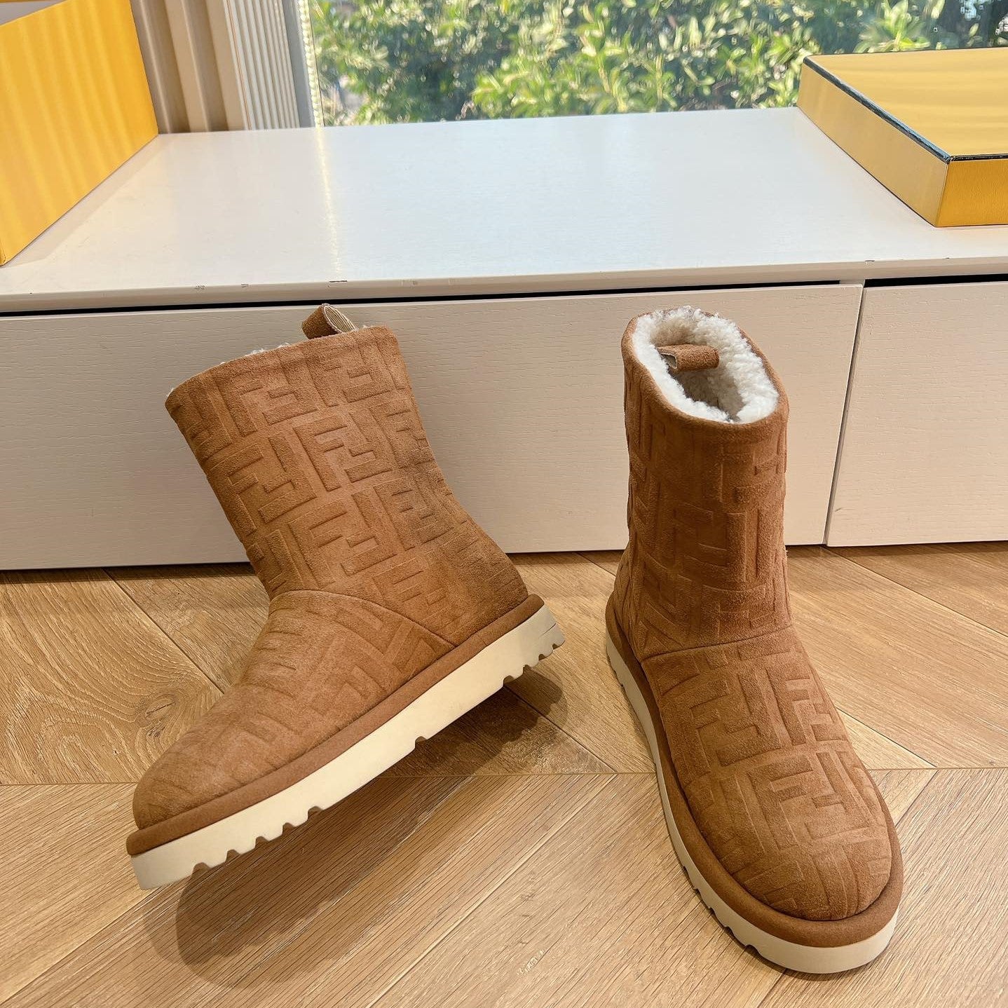 Fendi Apres Chic with FF chamois Boots Brown Suede 475234