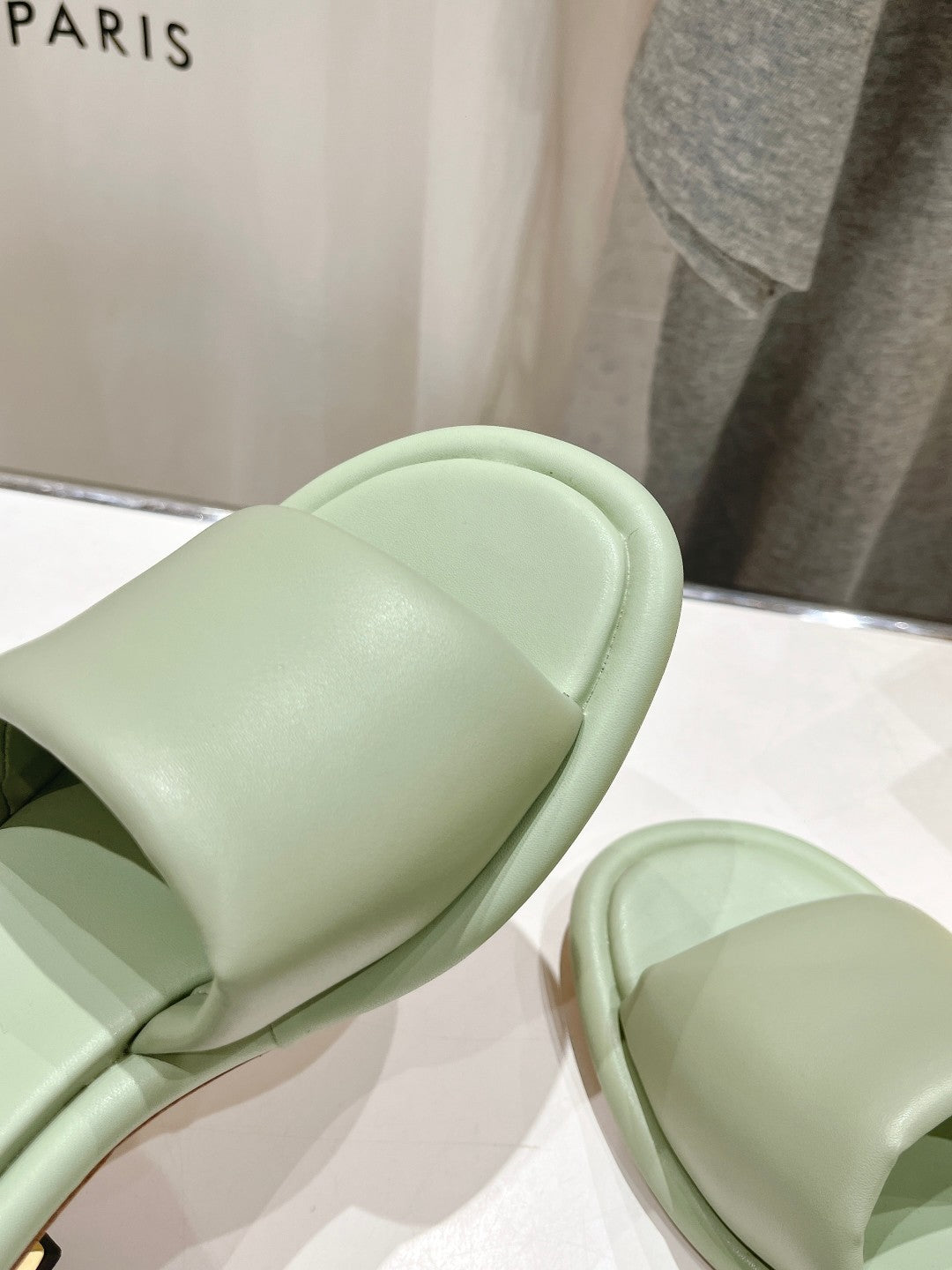FENDI BAGUETTE MEDIUM-HEEL SANDALS 45 MM IN GREEN MINT CALFSKIN