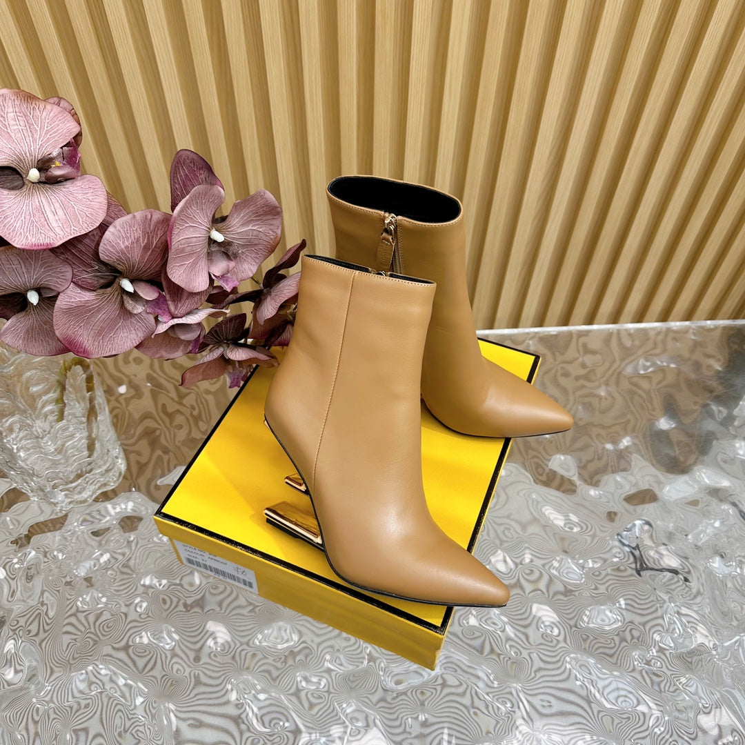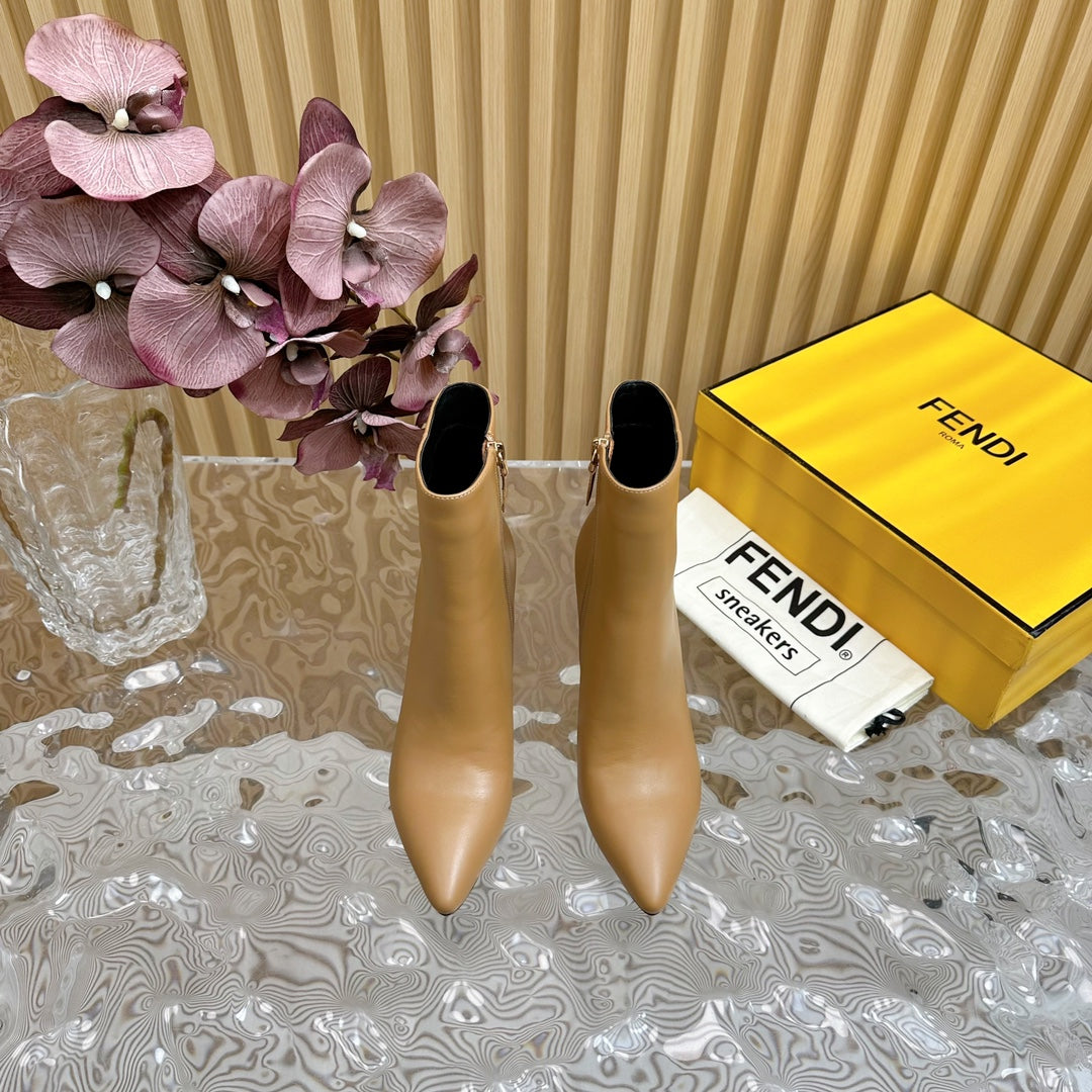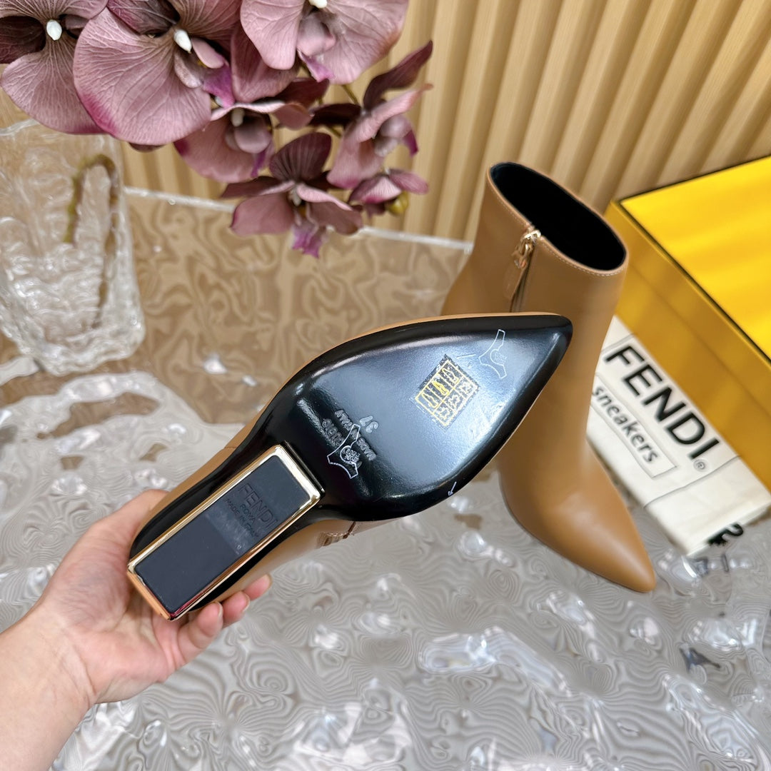 FENDI FIRST 80 MM BOOTS IN CIDER BROWN CALFSKIN WITH GOLD HARDWARE
