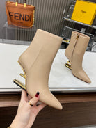 FENDI First Wedge Boots Light Beige Sheepskin 521224