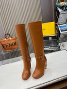 FENDI knee boots high heel caramel brown cowhide 521208