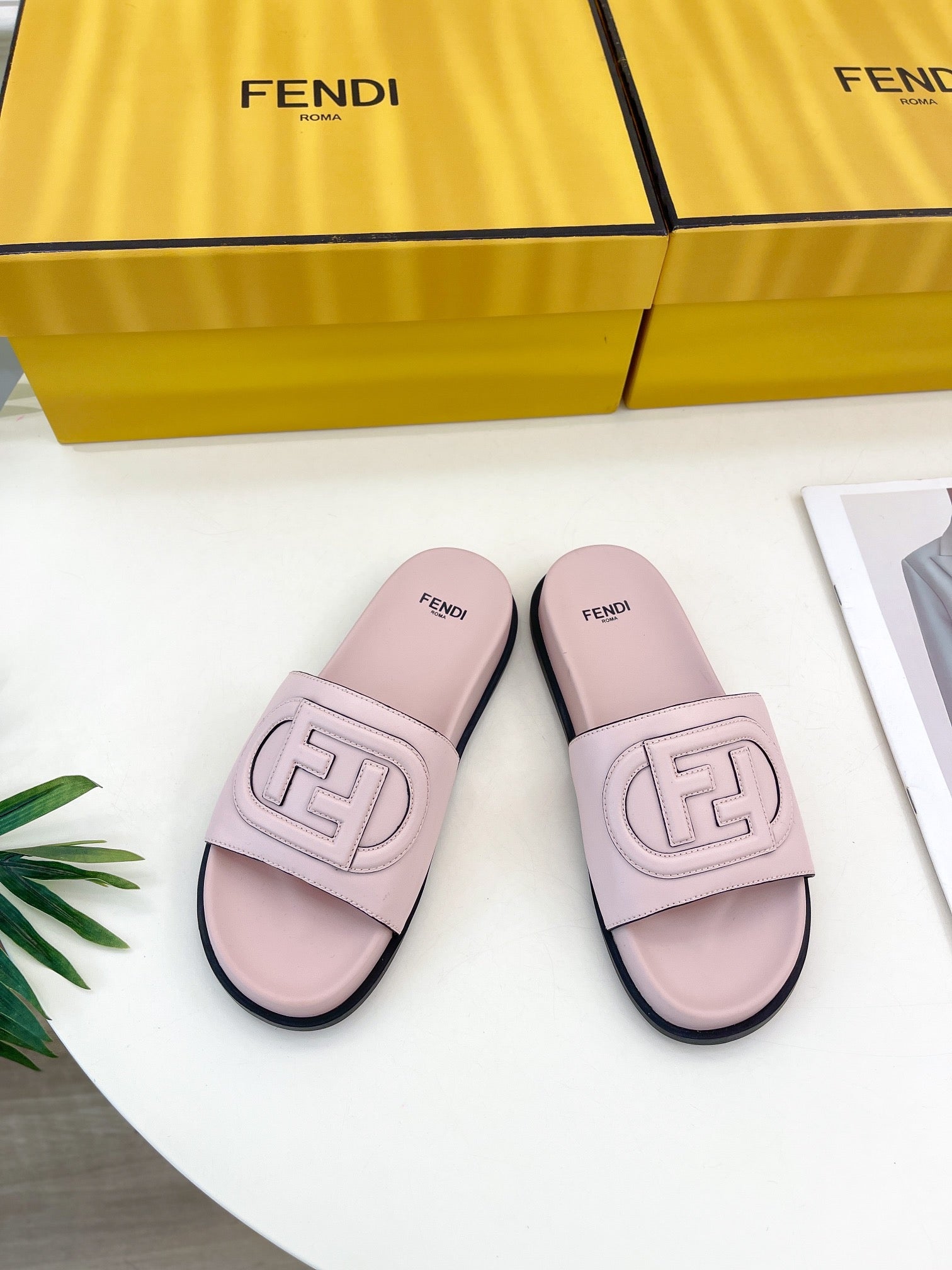 FENDI LOGO SLIDES IN LIGHT PINK CALFSKIN