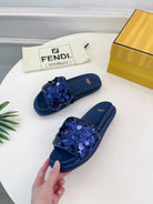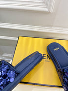 FENDI THICK SOLE 3 CM SEQUIN SLIPPER NAVY BLUE